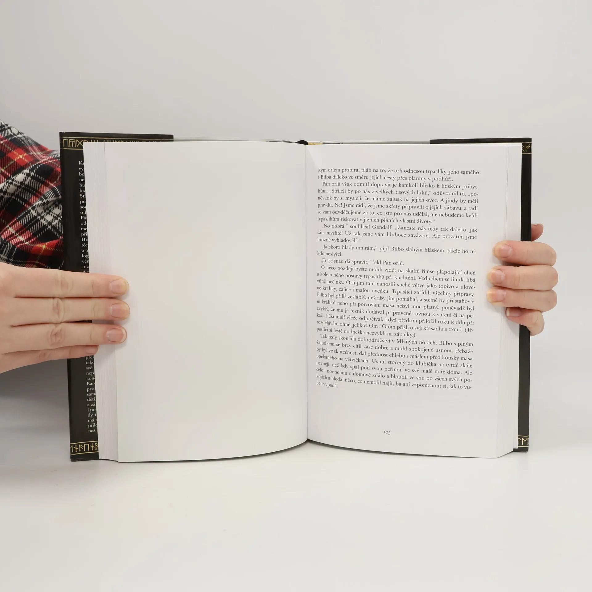 Kniha s nezvyklým názvem byla vydána v roce 1937, a to bez většího zájmu. Ani autor netušil, že se stane vstupní branou do fascinujícího světa Středozemě, který se o dvacet let později stane dějištěm mytického souboje Dobra a Zla v eposu o Prstenu moci. Ten si získal miliony oddaných čtenářů, zejména mezi mladými lidmi, a díky němu se dostalo cti i dříve opomíjenému dílu. Svět Středozemě se během let vyvinul, získal celistvější podobu, historii, mytologii, jazyky a písně, oživily ho národy různých plemen. U kořenů tohoto tajemného světa stojí příběh o hobitovi jménem Bilbo, jehož život rozvrátí kouzelník Gandalf. Spolu s družinou trpaslíků ho pošle na výpravu, na níž ho čeká dobrodružství mezi obry, elfy a skřety. Malý, nenápadný hobit na této cestě nejen získá bohatství, ale také překvapivě prokáže, že není tak bezvýznamný – zachrání své druhy, unikne nepřátelům, oklame draka a zažehná hrozící válku. Barvité vyprávění, které obstojí jako samostatný příběh, nese poselství, že každý, i ten zdánlivě méně schopný, má své místo a příležitost ukázat, co v něm skutečně je.