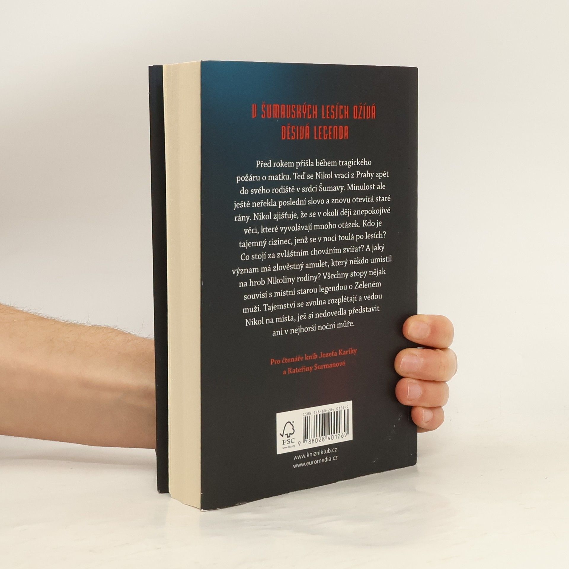 Před rokem přišla během tragického požáru o matku. Teď se Nikol vrací z Prahy zpět do rodného města v srdci Šumavy. Minulost ale ještě neřekla své poslední slovo a znovu otevírá staré rány. Nikol zjišťuje, že se v okolí dějí znepokojivé věci, které vyvolávají mnoho otázek. Kdo je tajemný cizinec, jenž se v noci toulá po lesích? Co stojí za zvláštním chováním zvířat? A jaký význam má zlověstný amulet, který někdo umístil na hrob Nikoliny rodiny? Všechny stopy nějak souvisí s místní starou legendou o Zeleném muži. Tajemství se zvolna rozplétají a vedou Nikol na místa, jež si nedovedla představit ani v nejhorší noční můře. Ve stínech hvozdu se skrývá zlo. A žízní po krvi…
