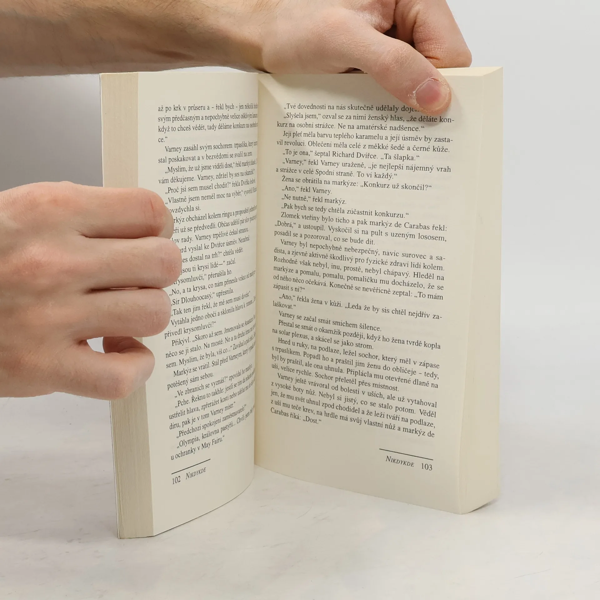 Pod ulicemi Londýna je svět, o kterém se většině lidí nikdy ani nesnilo. Město nestvůr a světců, vrahů a andělů, rytířů v brnění a bledých dívek v černém sametu. To je Londýn lidí, kteří propadli trhlinami. Richard Mayhew je mladý úředník, který se s tímto jiným Londýnem seznámí víc, než je mu příjemné. Jediný dobrý skutek ho vymrští z jeho klidného a spořádaného života do světa, který je pro něj záhadně známý a zároveň naprosto bizarní. Žije v něm dívka, která si říká Dvířka, a lidé kteří ji chtějí zabít. Je tam také anděl jménem Islington, který žije v síni ozářené svícemi, a starý Bailey, který bydlí na střechách. Jsou tam inteligentní krysy a krysomluvčí, a také Hrabě, jehož Dvůr se schází ve vagónu podzemní dráhy. Most noci chrání nebezpečnou cestu do čtvrti Knightsbridge, v kanálech žijí lidé, v labyrintu Bestie. Jsou tam nebezpečí a rozkoše, na jaké fantazie nestačí. A Richarda, který netouží po ničem jiném, než se dostat domů, čeká právě pod ulicemi jeho rodného města zvláštní osud – Nikdykde.