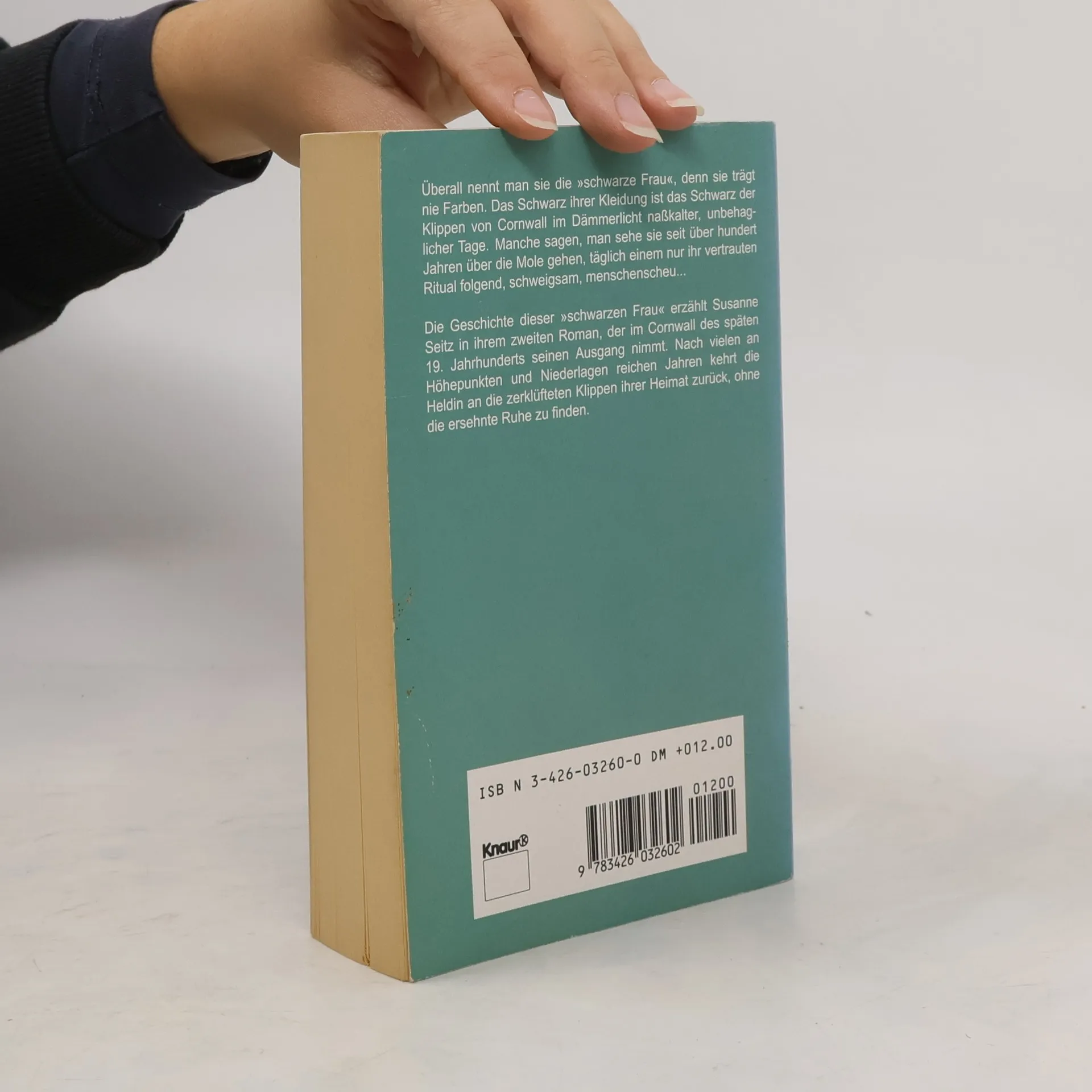 Überall nennt man sie die "schwarze Frau", denn sie trägt nie Farben. Das Schwarz ihrer Kleidung ist das Schwarz der Klippen von Cornwall im dämmerlicht naßkalter, unbehaglicher Tage. Manche sagen, man sehe sie seit über hundert Jahre über die Mole gehen, täglich einem nur ihr vertrauten Ritual folgend, schweigsam, menschenscheu ... Die Geschichte dieser "schwarzen Frau" erzählt Susanne Seitz in ihrem zweiten Roman, der im Cornwall des späten 19. Jahrhunderts seinen Ausgang nimmt. Nach vielen an Höhepunkten und Niederlagen reichen Jahren kehrt die Heldin an die zerklüfteten Klippen ihrer Heimat zurück, ohne die ersehnte Ruhe zu finden