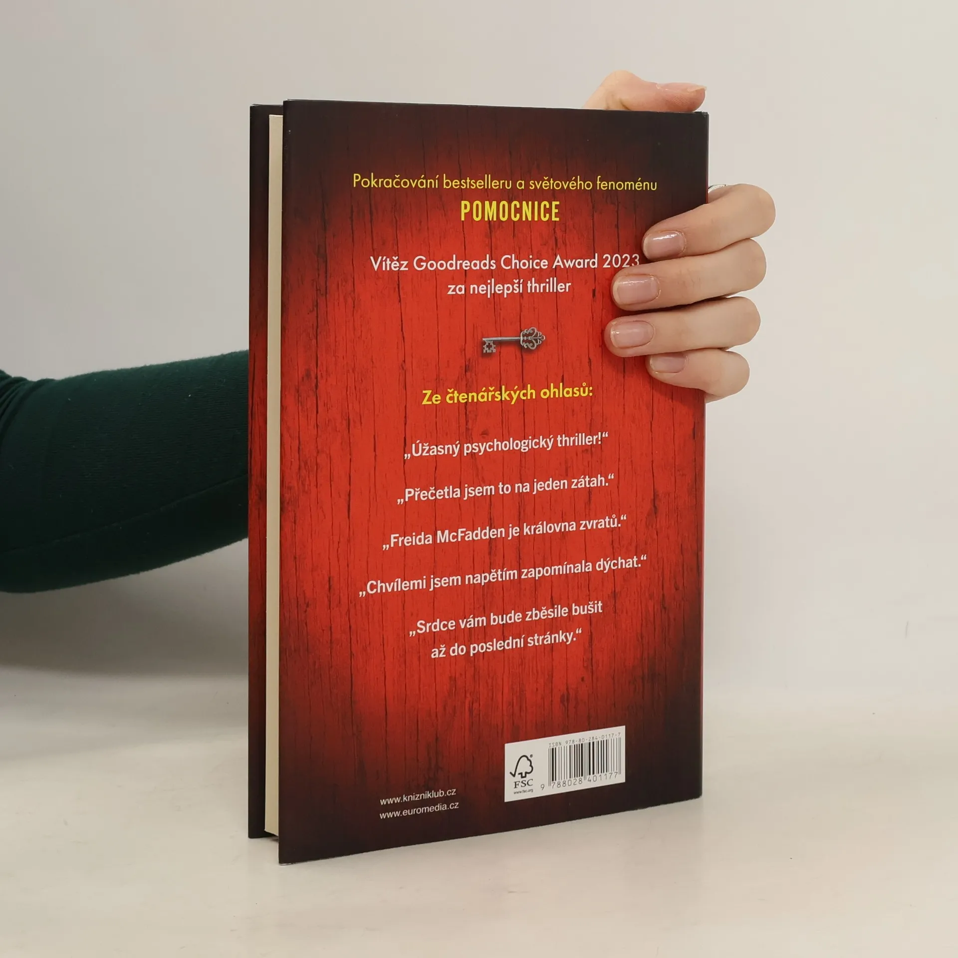 Pokračování bestselleru Pomocnice! Je těžké najít zaměstnavatele, který se nebude příliš vyptávat na mou minulost. A tak děkuji svým šťastným hvězdám, že jsem získala místo u Garrickových. Chvíli tu můžu v klidu pracovat, dokud nedostanu, co chci. Je to téměř dokonalé. Jenže jsem se pořád ještě nesetkala s paní Garrickovou ani se nepodívala do pokoje pro hosty. Jsem si jistá, že ji tam slýchávám plakat. Při praní prádla si taky všimnu skvrn od krve kolem límečku její noční košile. Takže si jednoho dne už nemůžu pomoct a na dveře zaklepu. Jakmile se pomalu otevřou, spatřím za nimi něco, co všechno změní…