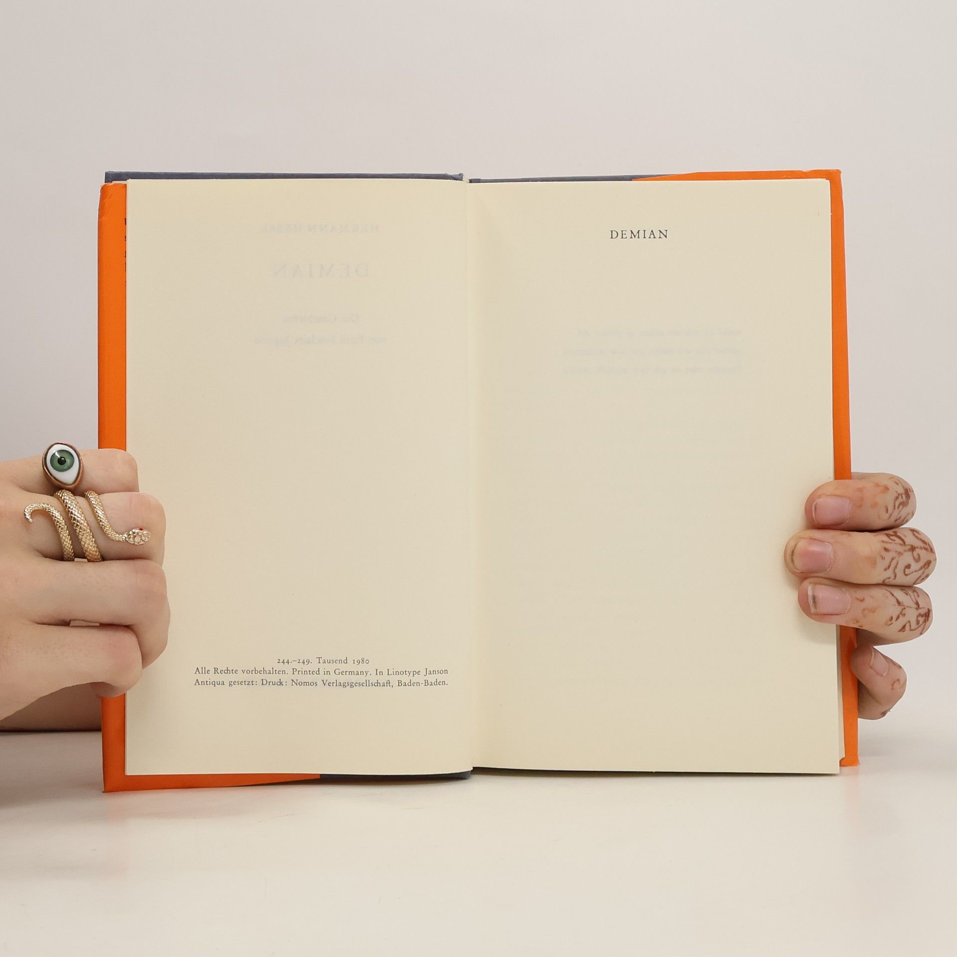 Wie alle Hauptwerke Hermann Hesses hat auch der Demian, den der damals 40jährige Autor mitten im Ersten Weltkrieg schrieb, eine ebenso ungewöhnliche wie spannende Entstehungs- und Wirkungsgeschichte. Daß dieses im Herbst 1917 vollendete Buch erst im Juni 1919, ein halbes Jahr nach Kriegsende, veröffentlicht wurde, lag an der Unbekanntheit des Verfassers. Denn Hesse hatte das Manuskript dem Verlag als das Erstlingswerk eines kranken jungen Dichters empfohlen, des zeitkritischen Poeten Emil Sinclair, der bisher nur in Zeitungen und Zeitschriften durch pazifistische Mahnrufe und Erzählungen aufgefallen war (die gleichfalls von Hesse stammten). Doch trotz des Inkognitos erlebte das Buch eine geradezu stürmische Aufnahme und wurde noch im Erscheinungsjahr mit dem Fontane-Preis für das beste Erstlingswerk eines Nachwuchsautors ausgezeichnet. Thomas Mann verglich die elektrisierende Wirkung des Buches mit der von Goethes Werther, da es »mit unheimlicher Genauigkeit den Nerv der Zeit traf und eine ganze Jugend, die wähnte aus ihrer Mitte sei ihr ein Künder ihres tiefsten Lebens entstanden, zu dankbarem Entzücken hinriß«. Bis zur Entdeckung des Pseudonyms im Mai 1920 erschienen drei Auflagen, denen dann unter Hesses eigenem Namen zu seinen Lebzeiten noch 93 weitere folgten.