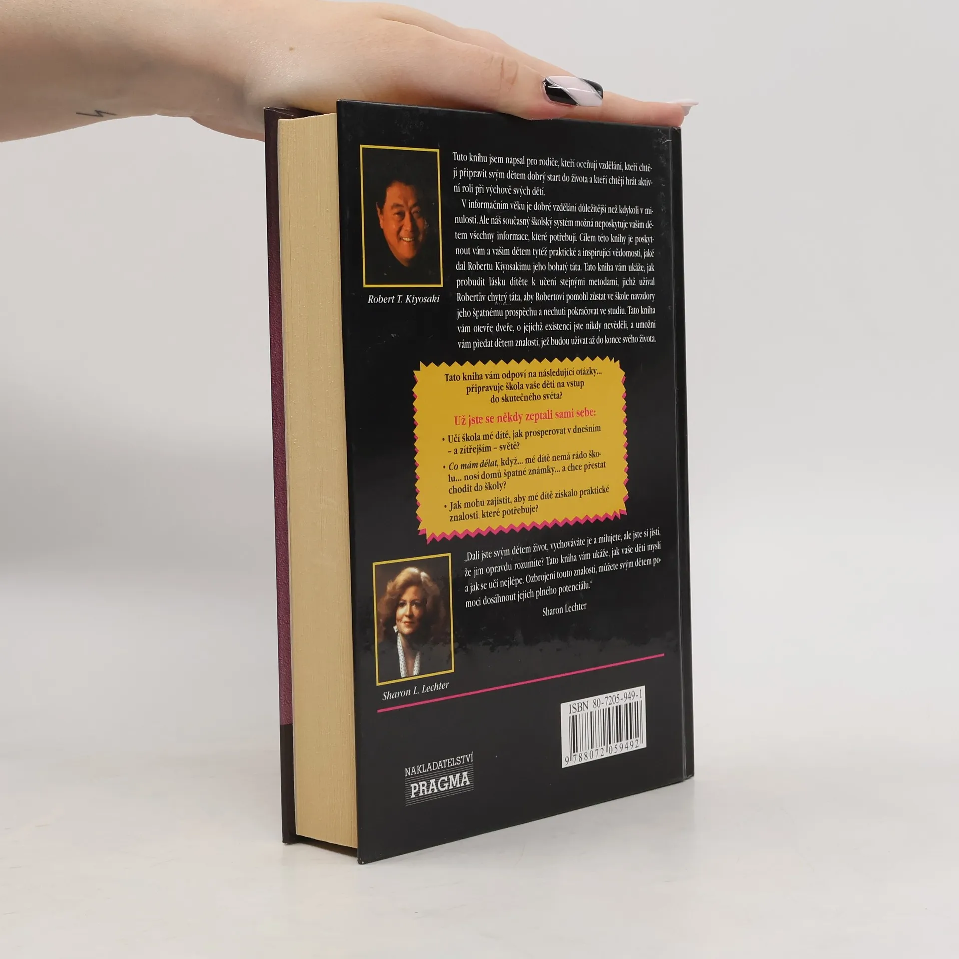 Tuto knihu jsem napsal pro rodiče, kteří oceňují vzdělání, kteří chtějí připravit svým dětem dobrý start do života a kteří chtějí hrát aktivní roli při výchově svých dětí. V informačním věku je dobré vzdělání důležitější než kdykoli v minulosti. Ale náš současný školský systém možná neposkytuje vašim dětem všechny informace, které potřebují. Cílem této knihy je poskytnout vám a vašim dětem tytéž praktické a inspirující vědomosti, jaké dal Robertu Kiyosakimu jeho bohatý táta. Tato kniha vám ukáže, jak probudit lásku dítěte k učení stejnými metodami, jichž užíval Robertův chytrý táta, aby Robertovi pomohl zůstat ve škole navzdory jeho špatnému prospěchu a nechuti pokračovat ve studiu. Tato kniha vám otevře dveře, o jejichž existenci jste nikdy nevěděli, a umožní vám předat dětem znalosti, jež budou užívat až do konce svého života.