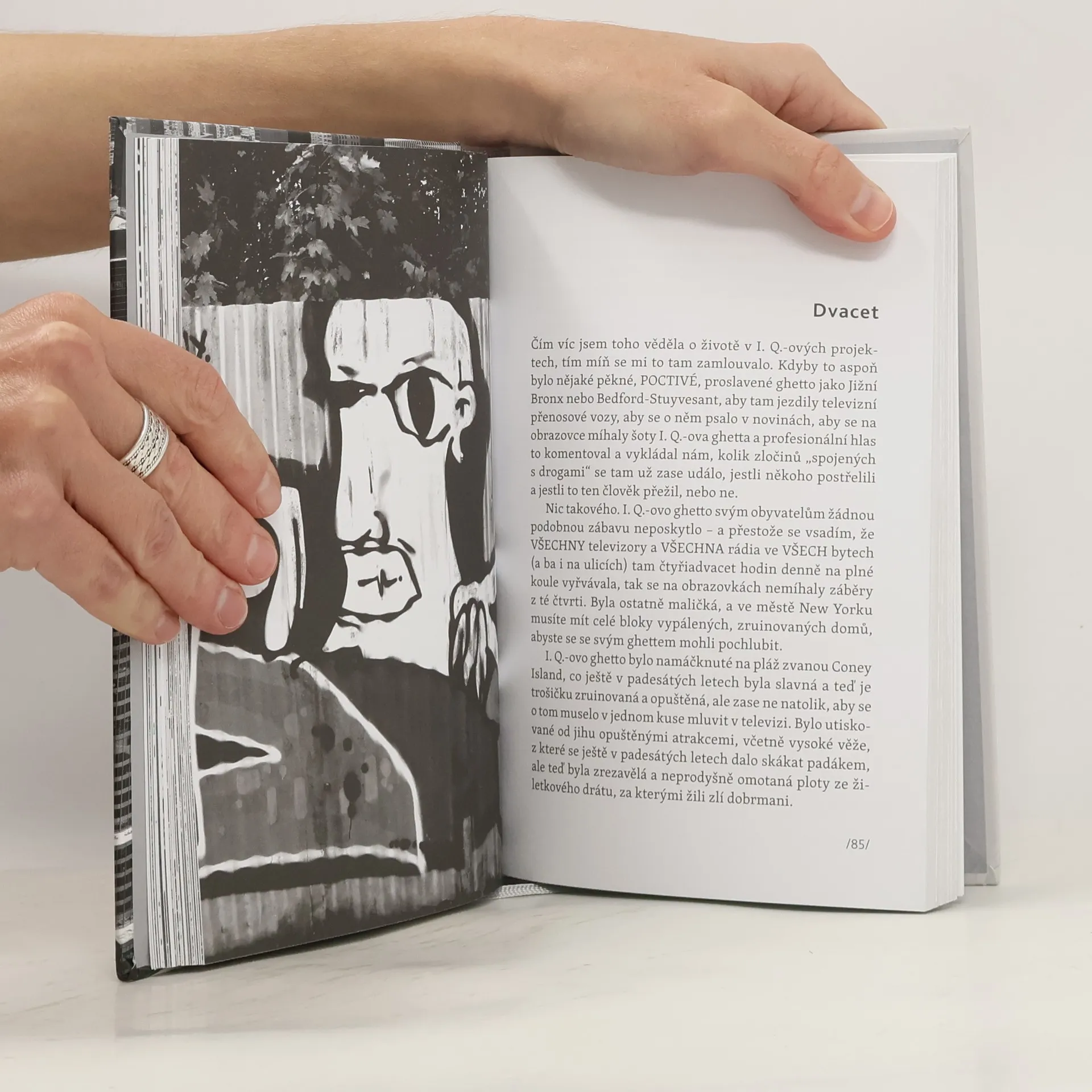 „I. Q. ze mě vytahuje kořeny. Jeden po druhém, rychle, v rytmu rapu. Tak rychle, až to lupe. Lup. Lup. Lup. I. Q. je vytáhne, oklepe od hlíny – a já jsem celá děravá, plná děr jako po vytržených zubech. Z I. Q. je ve mně čím dál míň a míň; už ve mně nekoření; už není ani trochu MŮJ.“ Můj I. Q., to je příběh velké, bláznivé lásky nebo spíš obsese. Vztah předem odsouzený k zániku, ale o to silnější, palčivější a hlubší, tu slouží jako podobenství zoufalé lásky k městu New York, nádherné a nelítostné metropoli, která své věrné přetavuje do podob, jaké by sami nečekali. Svěže, neotřele, rytmicky psané vyznání, v kterém je o New Yorku všechno. V Mladé frontě vydání první.