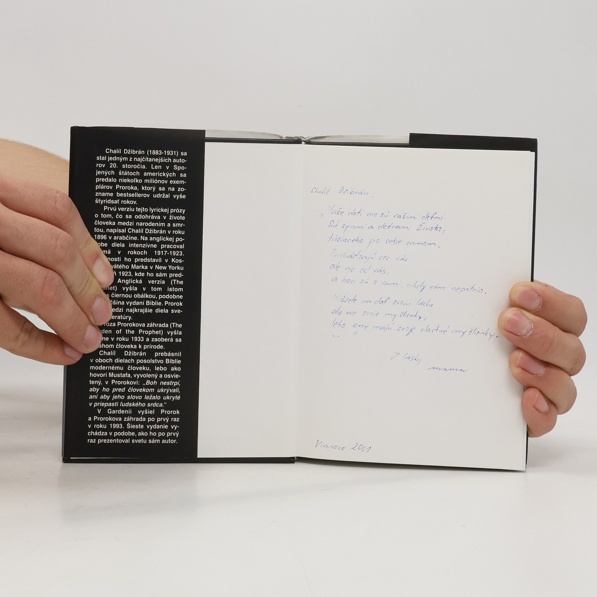 Lyrická próza Prorok (The Prophet) od Chalíla Džibrána je jedným z najpôvabnejších a najčítanejších klenotov svetovej literatúry. Anglická verzia uzrela svetlo sveta v jeseni 1923 v Kostole svätého Marka v New Yorku, kde ju autor sám predniesol. Súčasťou tohto vydania je aj Prorokova záhrada(The Garden of Prophet) z roku 1933. Autor majstrovsky prebásnil posolstvo Biblie modernému človeku, lebo ako hovorí Mustafa, vyvolený a osvietený v Prorokovi, „Boh nestrpí, aby bol pred človekom ukrytý, ani aby Jeho slovo ležalo ukryté v priepasti ľudského srdca.“