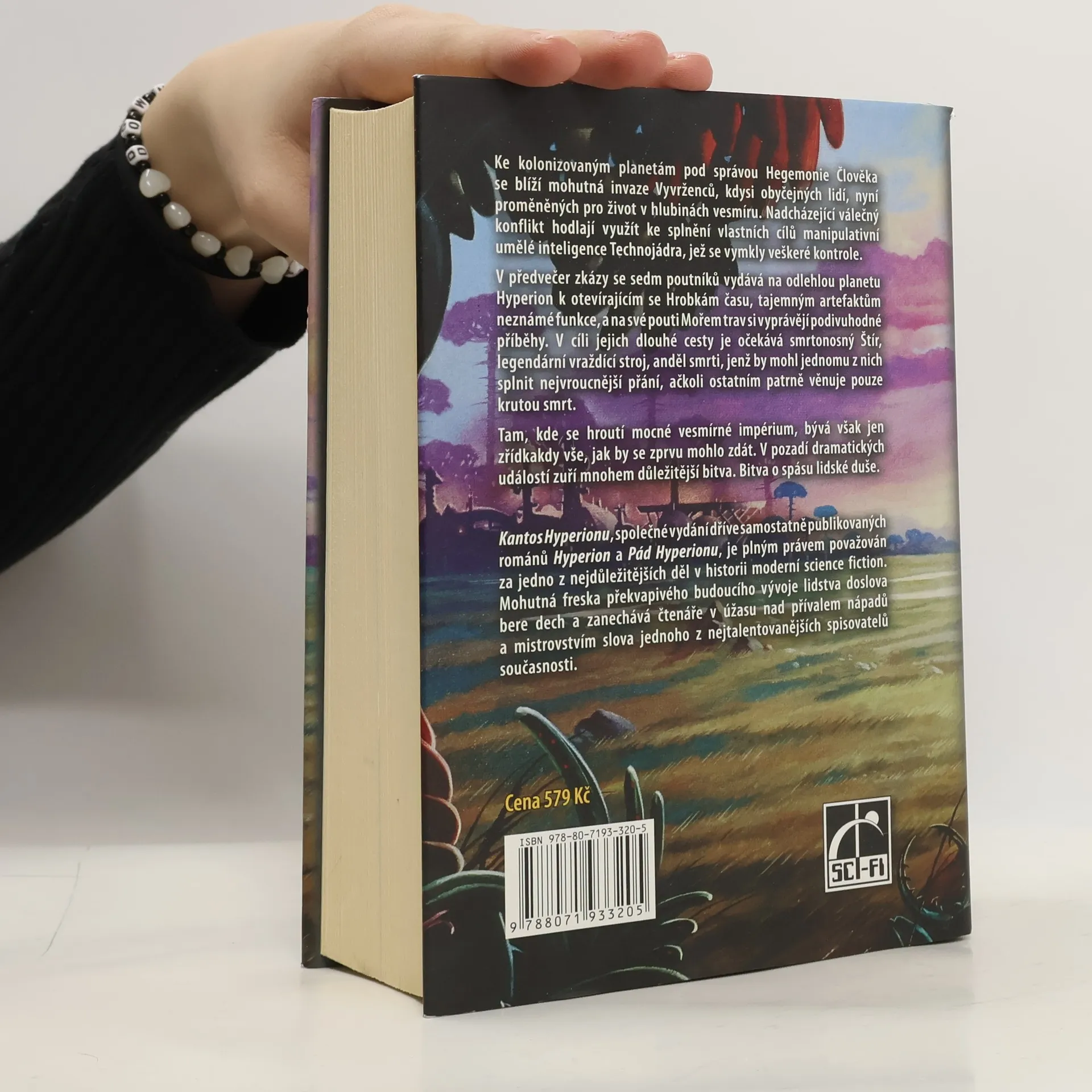 První a druhá kniha hyperionského cyklu. Ke kolonizovaným planetám pod správou Hegemonie Člověka se blíží mohutná invaze Vyvrženců, kdysi obyčejných lidí, nyní proměněných pro život v hlubinách vesmíru. Nadcházející válečný konflikt hodlají využít ke splnění vlastních cílů manipulativní umělé inteligence Technojádra, jež se vymkly veškeré kontrole. V předvečer zkázy se sedm poutníků vydává na odlehlou planetu Hyperion k otevírajícím se Hrobkám času, tajemným artefaktům neznámé funkce, a na své pouti Mořem trav si vyprávějí podivuhodné příběhy. V cíli jejich dlouhé cesty je očekává smrtonosný Štír, legendární vraždící stroj, anděl smrti, jenž by mohl jednomu z nich splnit nejvroucnější přání, ačkoli ostatním patrně věnuje pouze krutou smrt. Tam, kde se hroutí mocné vesmírné impérium, bývá však jen zřídkakdy vše, jak by se zprvu mohlo zdát. V pozadí dramatických událostí zuří mnohem důležitější bitva. Bitva o spásu lidské duše. Kantos Hyperionu, společné vydání dříve samostatně publikovaných románů Hyperion a Pád Hyperionu, je plným právem považován za jedno z nejdůležitějších děl v historii moderní science fiction. Mohutná freska překvapivého budoucího vývoje lidstva doslova bere dech a zanechává čtenáře v úžasu nad přívalem nápadů a mistrovstvím slova jednoho z nejtalentovanějších spisovatelů současnosti.