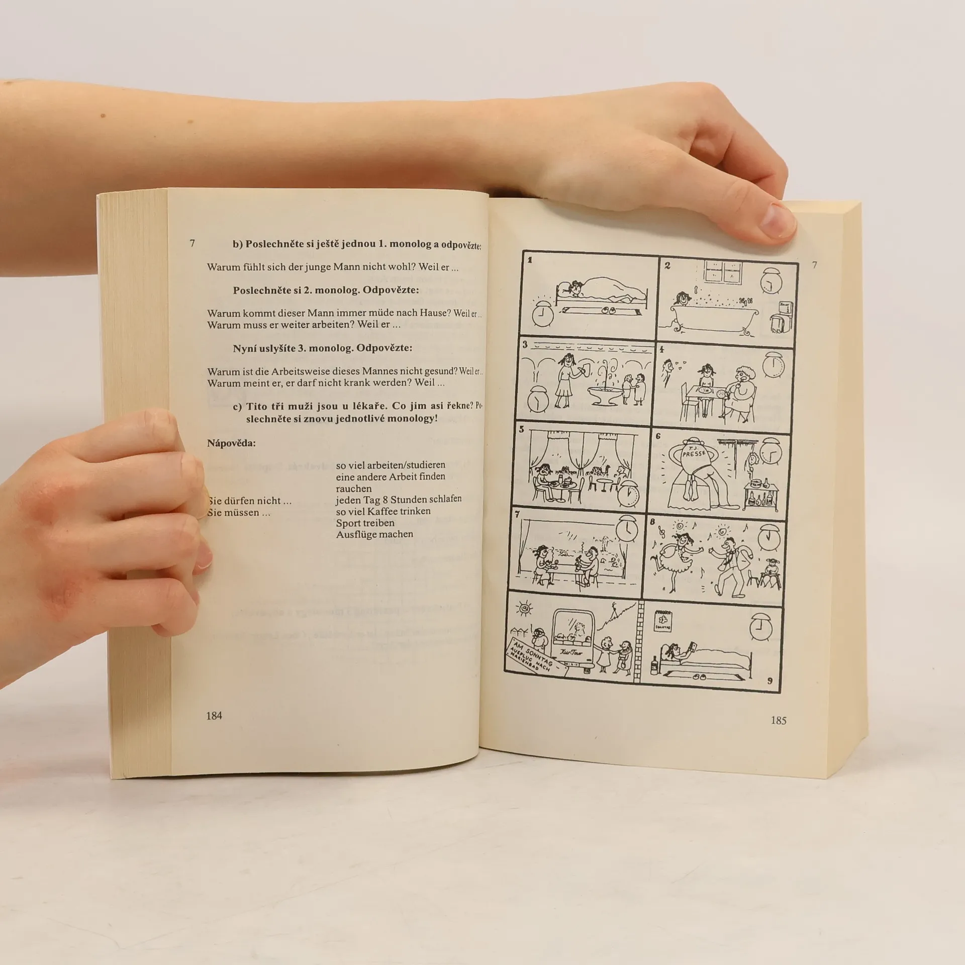 Učebnice je určena všem zájemcům o studium německého jazyka, a to jak těm, kteří teprve začínají, tak těm, kteří základy jazyka už zvládli. Je rozčleněna do 22 lekcí, zaměřuje se na komunikativní zvládnutí obecného jazyka a vede k získání dovednosti dorozumět se v běžných životních situacích (představování, na návštěvě, v obchodě, v restauraci, v hotelu, u lékaře, na poště atd.). Mluvnický výklad se omezuje na základní gramatické jevy, které jsou důležité pro obecnou jazykovou komunikaci. Nové vydání této oblíbené učebnice bylo jazykově upraveno rodilou mluvčí, grafická úprava od základu změnila svoji podobu. Kromě ilustrací Markéty Holečkové je učebnice oživena fotografiemi, orientaci usnadní zcela nové piktogramy doprovázející jednotlivé části lekcí. Velká pozornost je věnována nácviku ústní komunikace (cvičení označená znakem pro dialog), v každé lekci se systematicky procvičuje čtení a poslech s porozuměním. Po probrání učebnice by měl mít student znalosti postačující ke složení zá