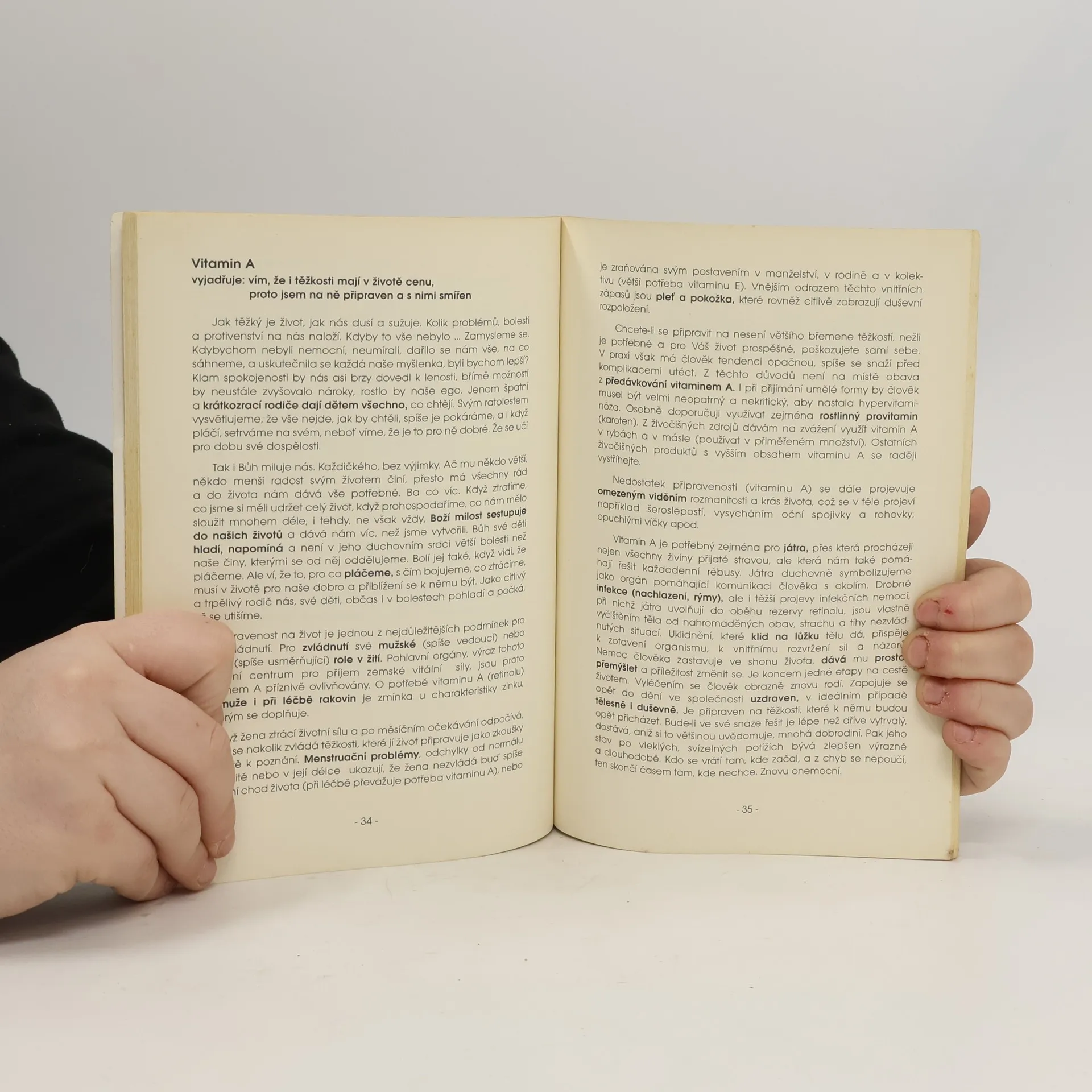 Autorova prvotina. Netradičně pojednává o tématu prvků a vitaminů.Poodkrývá zákonitosti vzniku a rozvoje různých onemocnění a nabízí cestu jak umocnit účinek léčebných prostředků. Ukazuje, že svým jednáním výrazně ovlivňujeme míru přisvojování prvků a vitaminů i jejich osobní potřebu. Jestliže člověk alespoň zčásti pochopí duchovní poselství, které je do nich vetkané, rychleji se uzdraví a velmi zefektivní jejich užívání i využití v organismu.