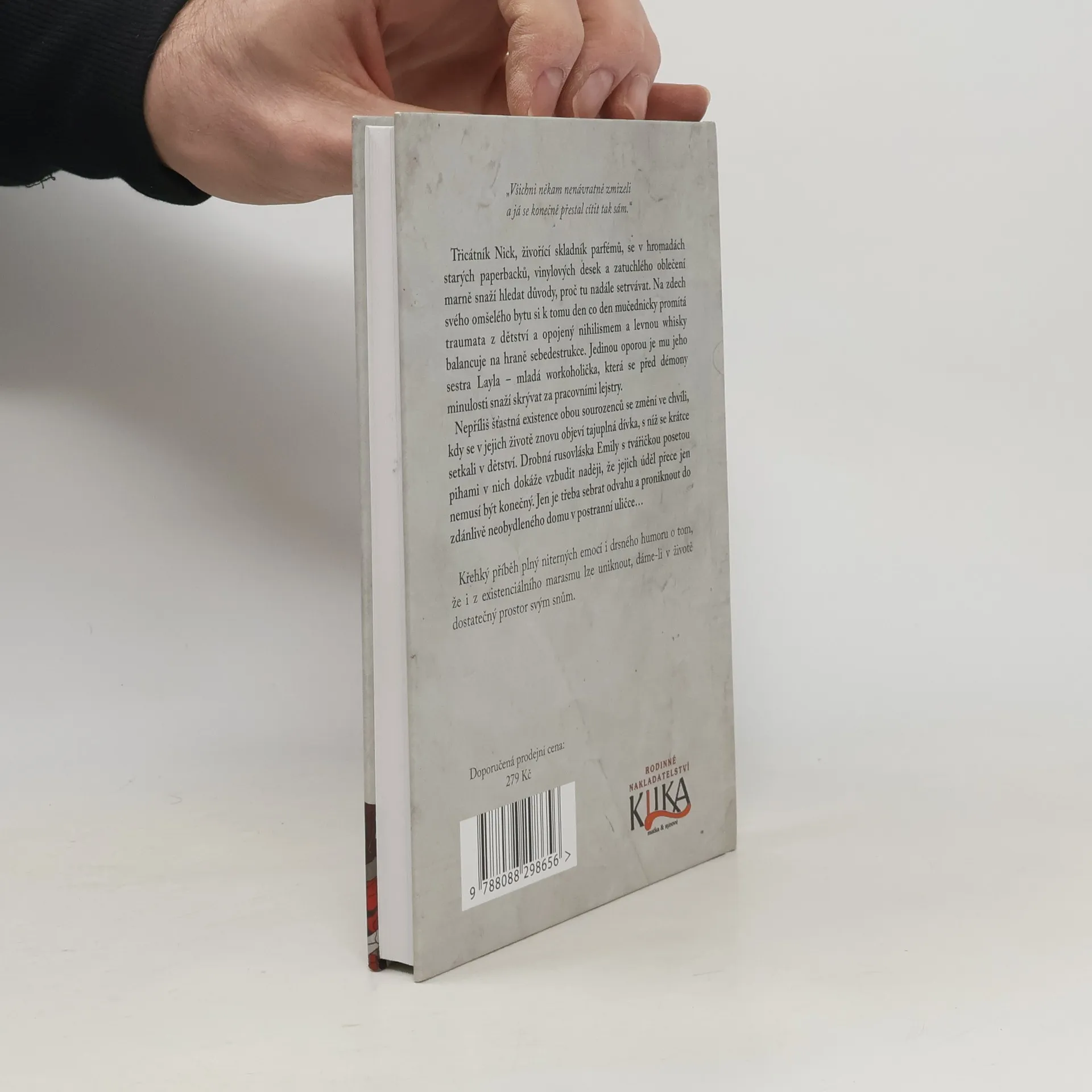 Třicátník Nick, živořící skladník parfémů, se v hromadách starých paperbacků, vinylových desek a zatuchlého oblečení marně snaží hledat důvody, proč tu nadále setrvávat. Na zdech svého omšelého bytu si k tomu den co den mučednicky promítá traumata z dětství a opojený nihilismem a levnou whisky balancuje na hraně sebedestrukce. Jedinou oporou je mu jeho sestra Layla – mladá workoholička, která se před démony minulosti snaží skrývat za pracovními lejstry. Nepříliš šťastná existence obou sourozenců se změní ve chvíli, kdy se v jejich životě znovu objeví tajuplná dívka, s níž se krátce setkali v dětství. Drobná rusovláska Emily s tvářičkou posetou pihami v nich dokáže vzbudit naději, že jejich úděl přece jen nemusí být konečný. Jen je třeba sebrat odvahu a proniknout do zdánlivě neobydleného domu v postranní uličce… Křehký příběh plný niterných emocí i drsného humoru o tom, že i z existenciálního marasmu lze uniknout, dáme-li v životě dostatečný prostor svým snům.