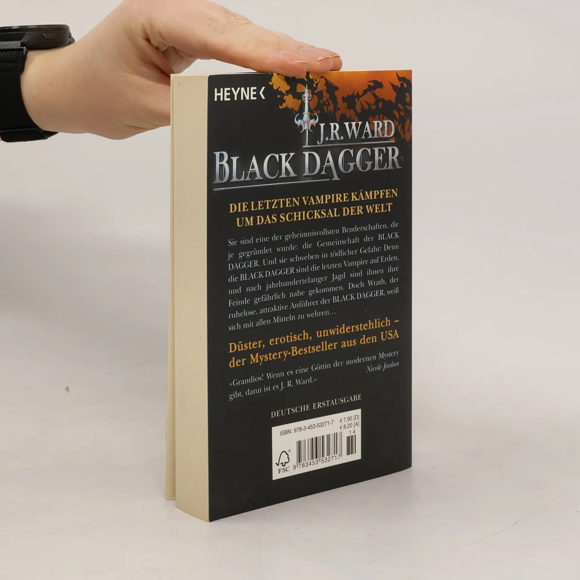 Düster, erotisch, unwiderstehlich – die letzten Vampire kämpfen um das Schicksal der Welt Das Leben der jungen Beth Randall verläuft eigentlich in ruhigen Bahnen – sie lebt in einem zu kleinen Apartment, geht selten aus und hat einen schlecht bezahlten Reporterjob bei einer kleinen Zeitung in Caldwell, New York. Ihr Job ist es auch, der sie an den Tatort eines ungewöhnlichen Mordes führt: Vor einem Club ist ein Mann bei der Explosion einer Autobombe gestorben, und die Polizei kann keinen Hinweis auf die wahre Identität des Toten finden. Dann trifft Beth auf den geheimnisvollen Wrath, der in Zusammenhang mit dem Mord zu stehen scheint. Der attraktive Fremde übt eine unheimliche Anziehung auf sie aus, der sie sich nicht entziehen kann. Während sie sich auf eine leidenschaftliche Affäre mit Wrath einlässt, wächst in ihr der Verdacht, dass er der gesuchte Mörder ist. Und Wrath hat noch ein paar Überraschungen mehr für sie auf Lager, denn er behauptet, ein Vampir zu sein – und das Oberhaupt der Bruderschaft der BLACK DAGGER, die seit Jahrhunderten einen gnadenlosen Krieg um das Schicksal der Welt führen muss ….