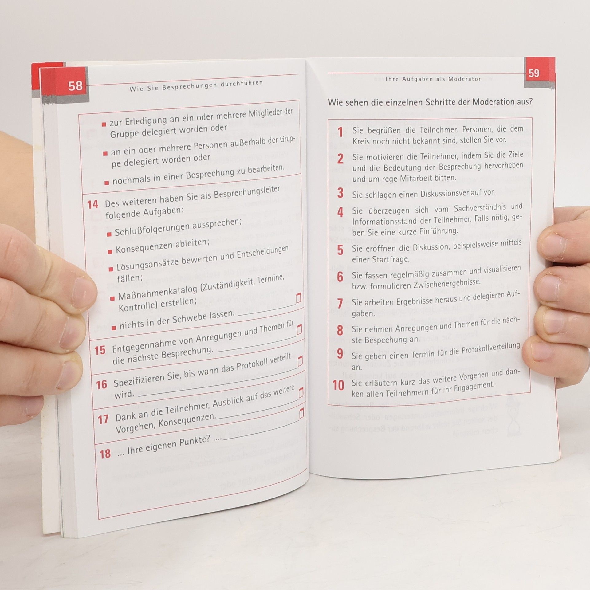 Wir alle haben sie schon erlitten: diese endlosen Meetings mit zermürbenden Grundsatzdiskussionen und zähen, fruchtlosen Verhandlungen. Danach fragen wir uns oft: Was hat diese Besprechung eigentlich gebracht? Der TaschenGuide 2Besprechungen" hilft dabei, die nächste Sitzung so zu gestalten, dass Sie sie mit handfesten Ergebnissen und dem guten Gefühl die Zeit sinnvoll genutzt zu haben, verlassen können. Sie erfahren, wie man Besprechungen gut vorbereitet und besser durchführt. Und auch eine Nachbereitung gehört dazu. Zahlreiche Checklisten und Tipps helfen Ihnen, Ihre Besprechung in den Griff zu be-kommen. Dazu erläutert der TaschenGuide, woran es liegt, dass Kommunikation oft missglückt - und was man dagegen tun kann.
