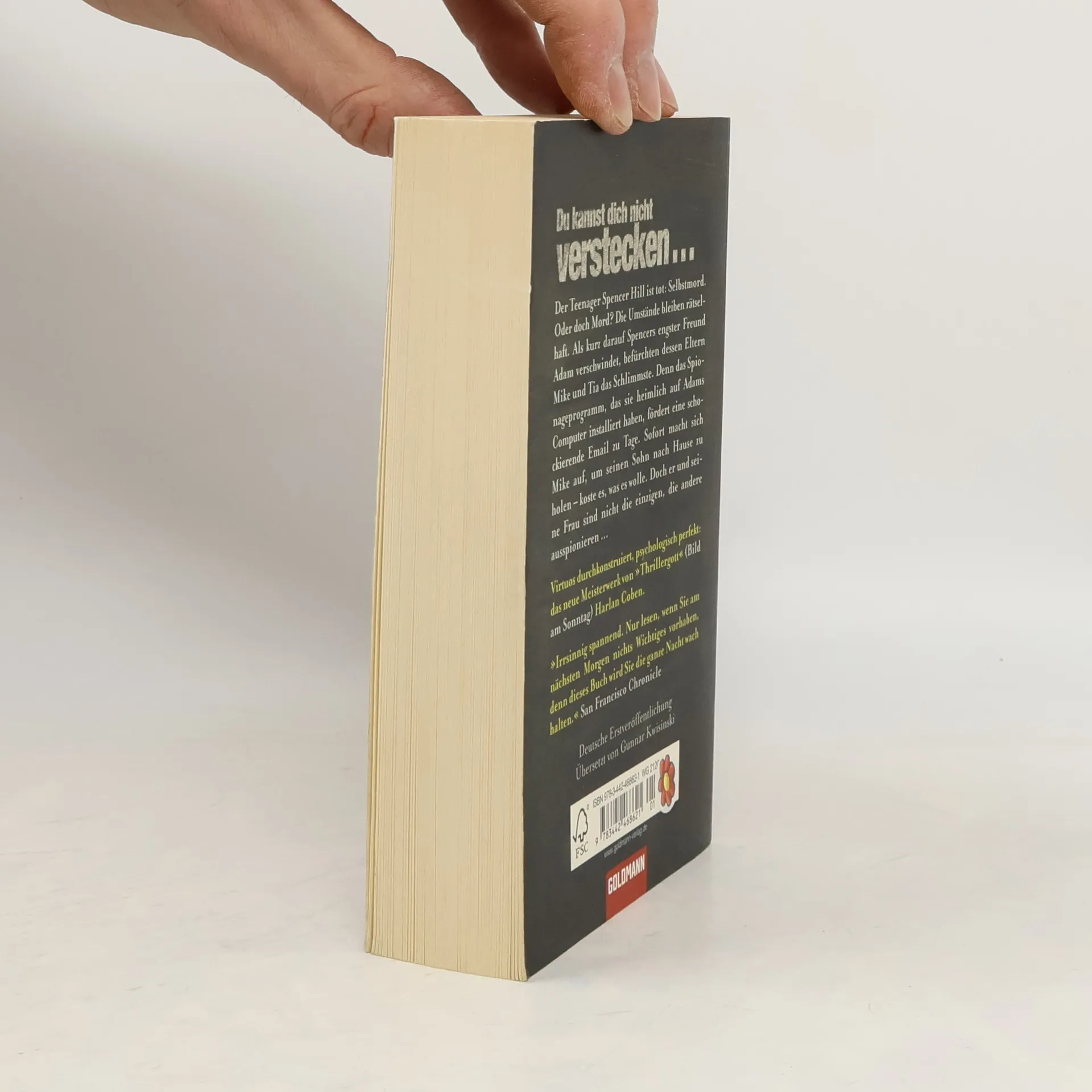 Harlan Cobens bislang beklemmendster Thriller! Der Teenager Spencer Hill ist tot: Selbstmord. Oder doch Mord? Als sein engster Freund Adam Baye verschwindet, befürchten dessen Eltern Mike und Tia das Schlimmste. In der Sorge um ihren Sohn haben sie heimlich ein Spionageprogramm auf Adams Computer installiert, das schon bald eine bedrohliche E-Mail zu Tage fördert. Alarmiert und schockiert macht sich nun Mike selbst auf, um seinen Sohn nach Hause zu holen – koste es, was es wolle. Doch er und seine Frau sind nicht die einzigen, die andere ausspionieren ...Virtuos durchkonstruiert und psychologisch perfekt!