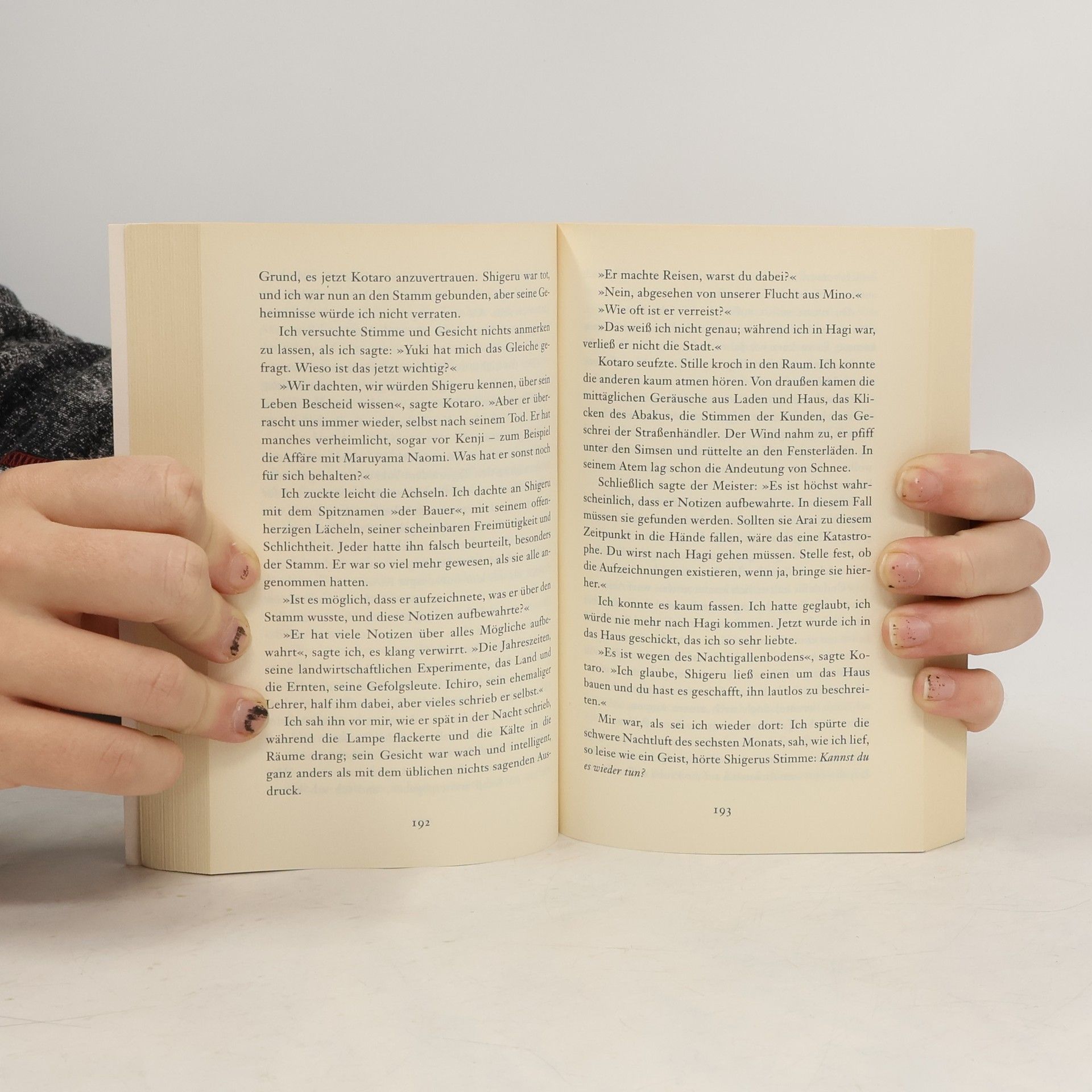 Takeo, der Erbe des mächtigen Otori-Clans, hat sich dem geheimnisvollen 'Stamm' angeschlossen. Er muß dem Glauben seiner Kindheit, seinem Recht auf Reichtum, Land und Macht abschwören - und seiner Liebe zu Kaede entsagen! Wenn nicht, wird der Stamm ihn töten.
