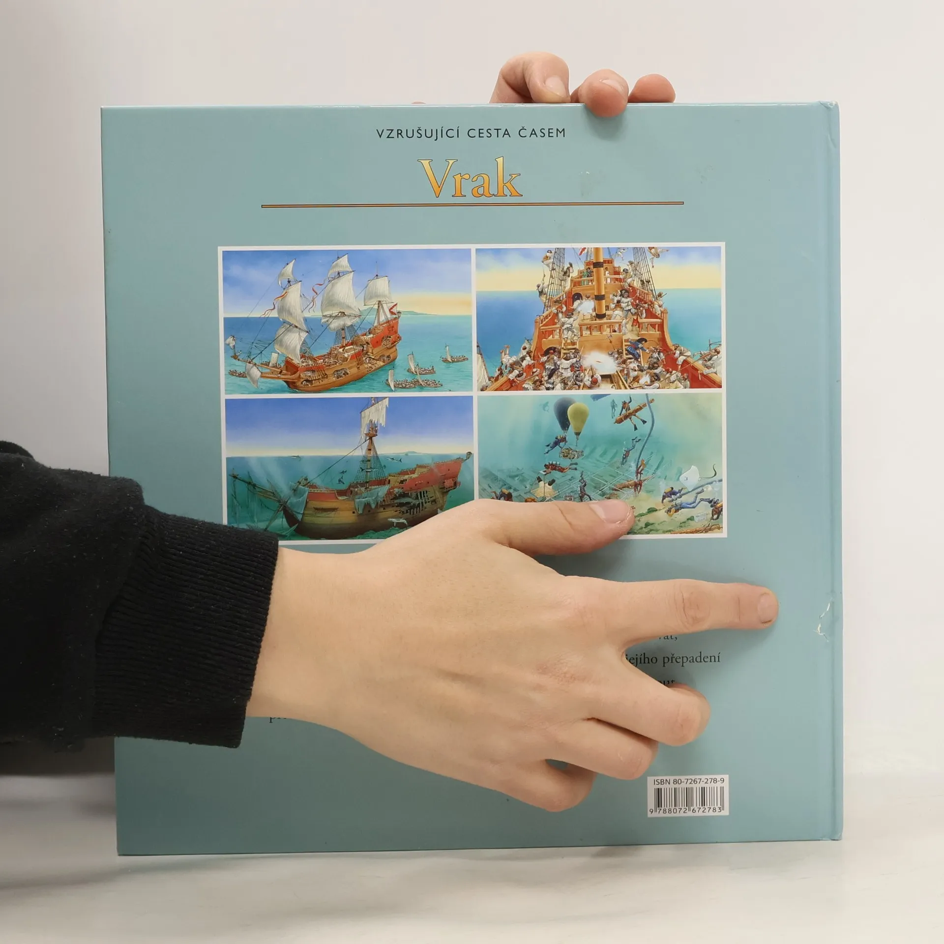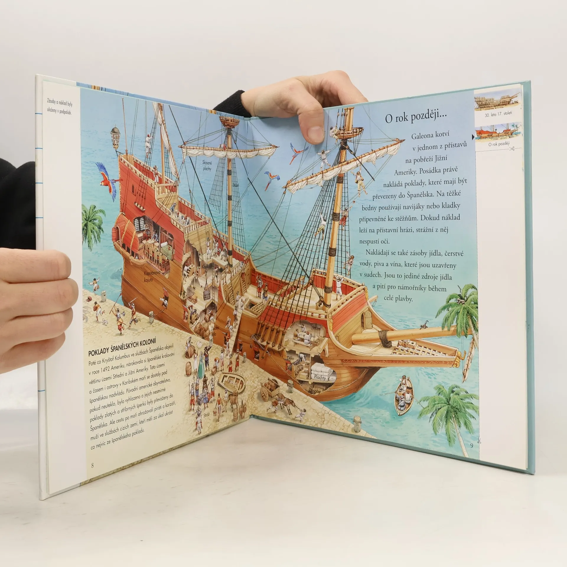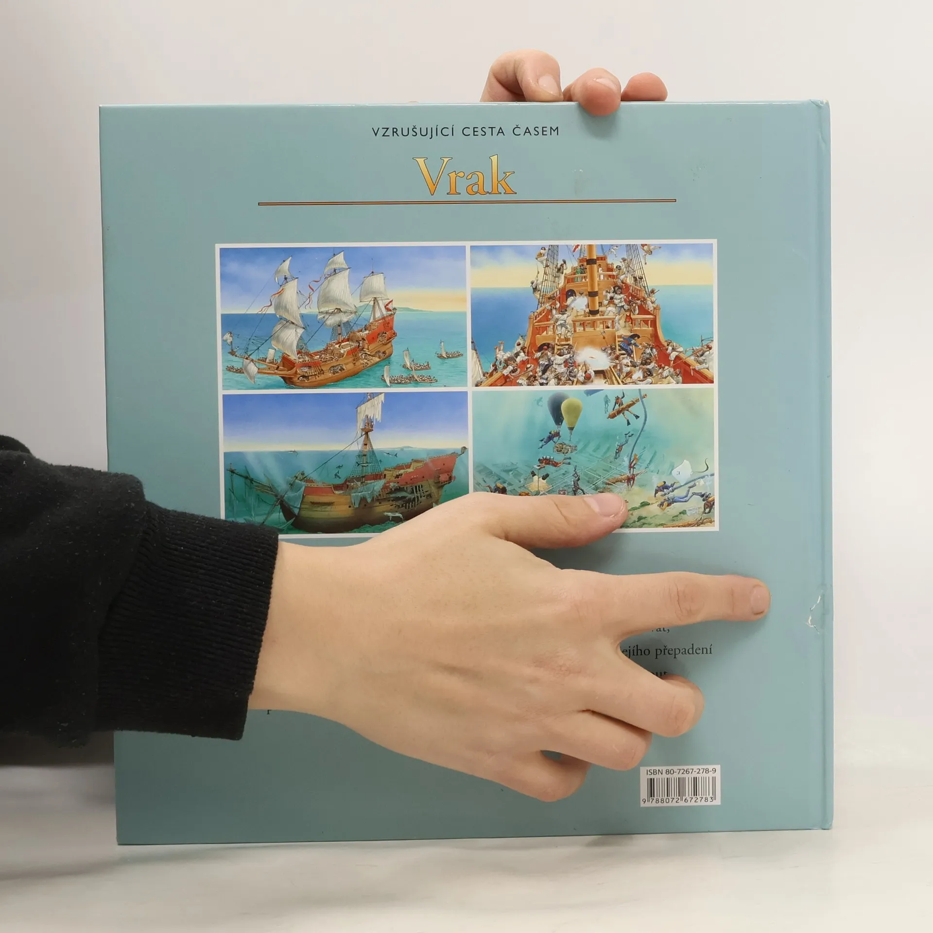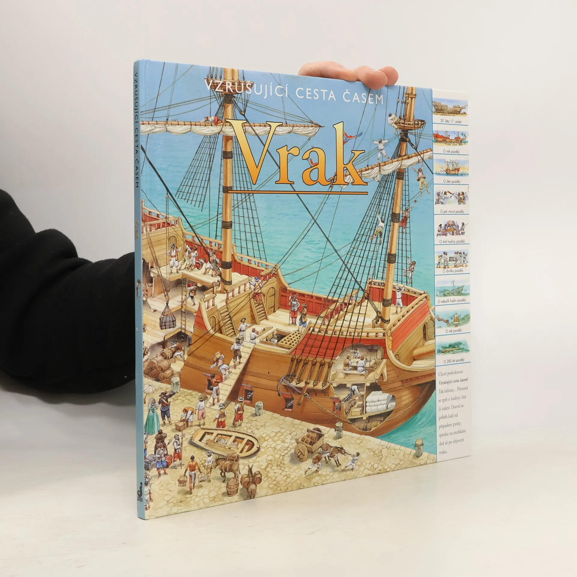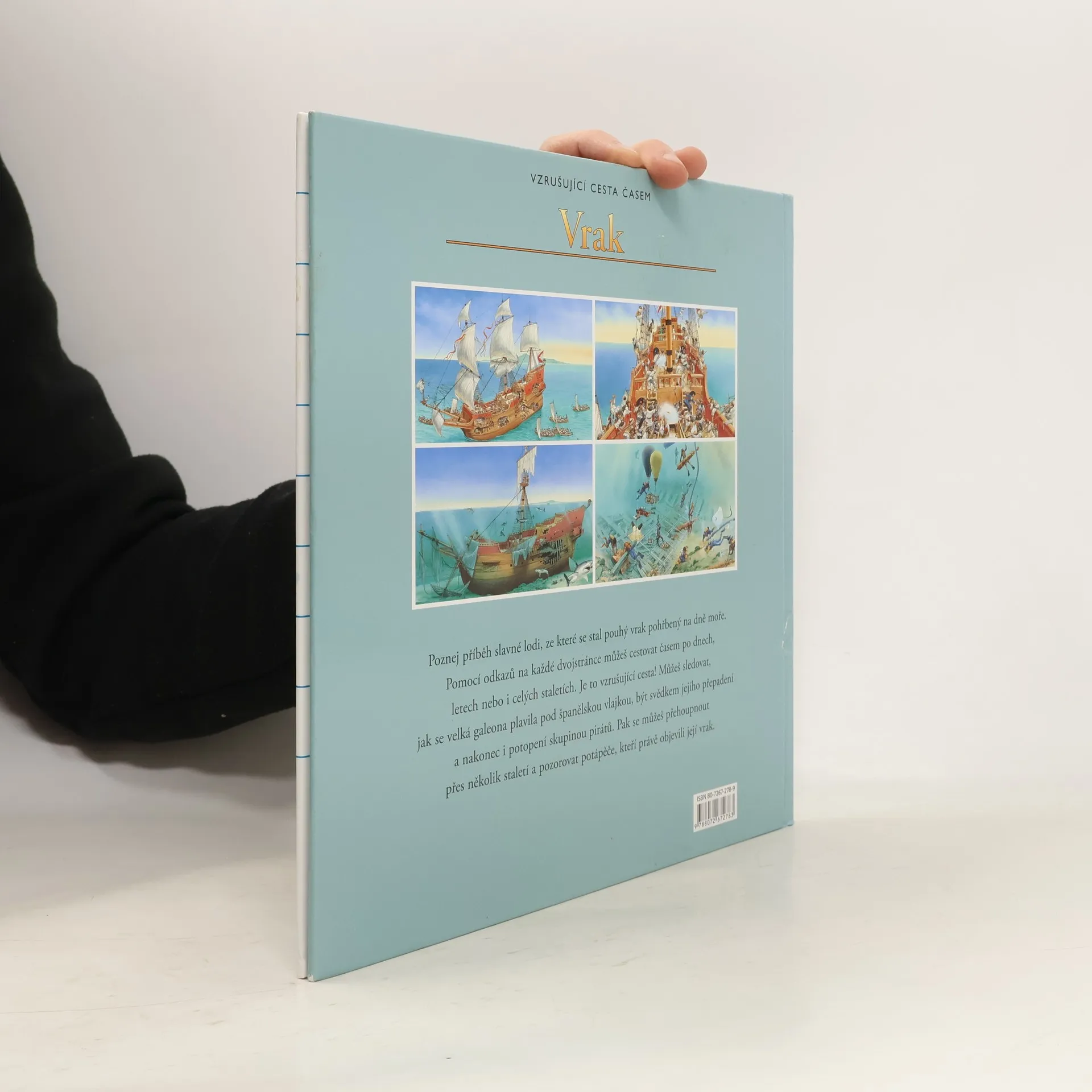 Chceš podniknout Vzrušující cestu časem? Tak zalistuj. Přeneseš se zpět o hodiny, léta či staletí. Poznej příběh slavné lodi, ze které se stal pouhý vrak pohřbený na dně moře. Pomocí odkazů na každé dvojstránce můžeš cestovat časem po dnech, letech nebo i celých staletích. Je to vzrušující cesta! Můžeš sledovat, jak se velká galeona plavila pod španělskou vlajkou, být svědkem jejího přepadení a nakonec i potopení skupinou pirátů. Pak se můžeš přehoupnout přes několik staletí a pozorovat potápěče, kteří právě objevili její vrak.