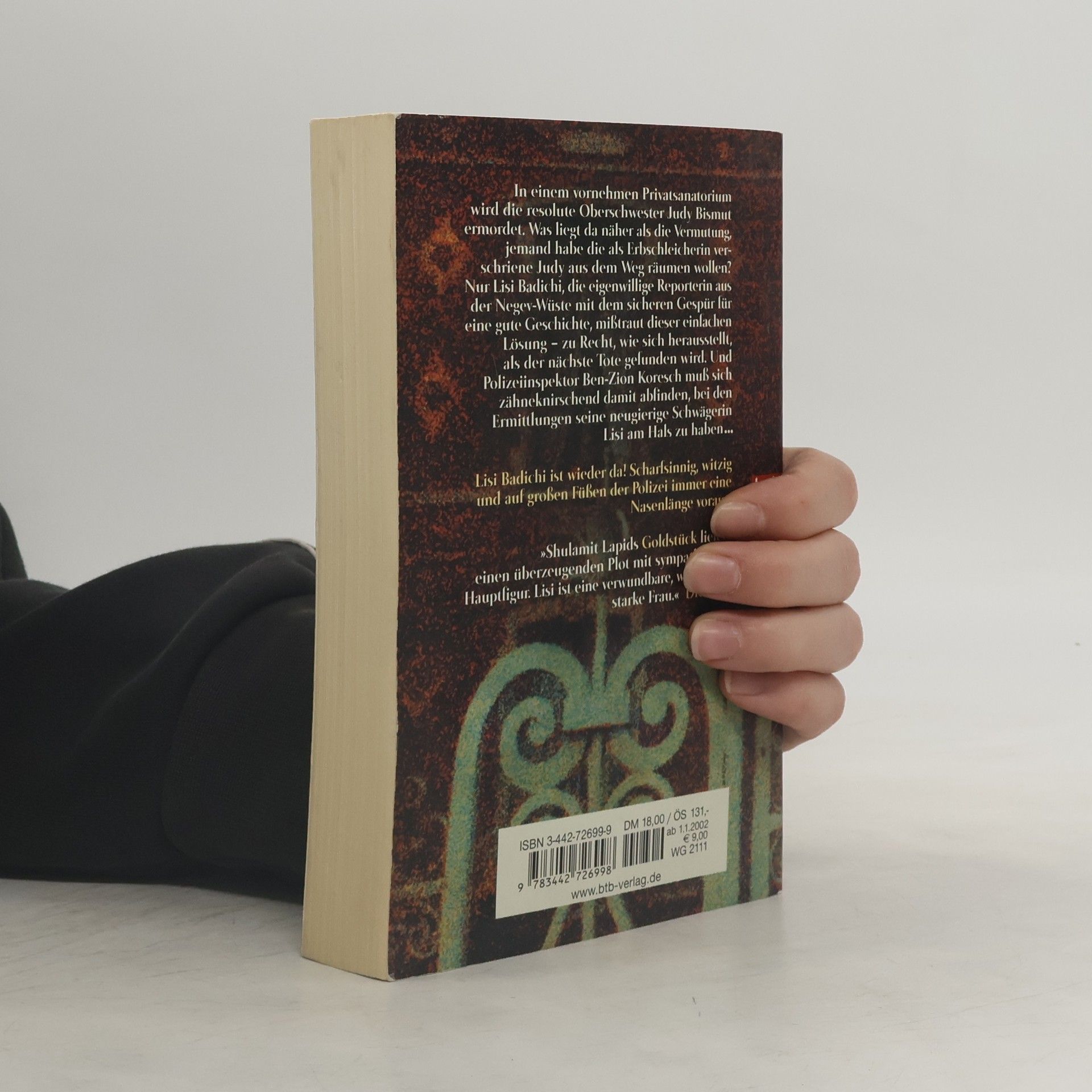Warum musste ihre Mutter auch unbedingt Karpfen in der Badewanne halten? Nie hätte sie sich sonst gleich drei Rippen gebrochen, bei dem Versuch eines der glitschigen Tiere aus der Wanne zu fischen. Die vielbeschäftigte Lokalreporterin Lisi Baldichi hat jetzt jeden Mittag eine Pflicht -- einen Besuch im Sanatorium. Während eines solchen öden Nachmittags bei ihrer Mutter, wird die hilfsbereite Pflegerin Judy ermordet. Und dann ist plötzlich die 93-jährige Schiffra tot. Wurde auch sie Opfer des Mörders? Und wo sind die Fotos aus ihren Alben, die sie wenige Tage zuvor Judy gezeigt hat? Hartnäckig verfolgt Lisi Baldichi sämtliche Spuren, denn der ermittelnde Kommissar ist, wie schon in den anderen Krimis der israelischen Autorin Shulamit Lapid, ihr Schwager Benzi. Gerne nutzt sie ihren familiären Vorteil, Informationen aus erster Hand zu erhalten. So ist der neue Fall für Lisi, die Frau mit den großen Füßen und dem geringen Humor, ein Heimspiel, auch wenn des Rätsels Lösung weit in der Vergangenheit liegt. Shulamit Lapid hat für ihren Erstling mit der Reporterin Lisi Baldichi Lokalausgabe , 1995 den Deutschen Krimipreis erhalten. Ganz so schnodderig ist ihr Tonfall im dritten Baldichi-Roman nicht geblieben, doch neben dem gut beschriebenen Alltag im gegenwärtigen Be´er Scheva, reicht die Geschichte bis in die Zeit des ersten Weltkriegs zurück, als es den Staat Israel als solchen noch nicht gab und ihre historischen Recherchen, die sie en passant einfließen lässt, bieten einen interessanten Hintergrund zur gegenwärtigen Situation in Israel. --Manuela Haselberger