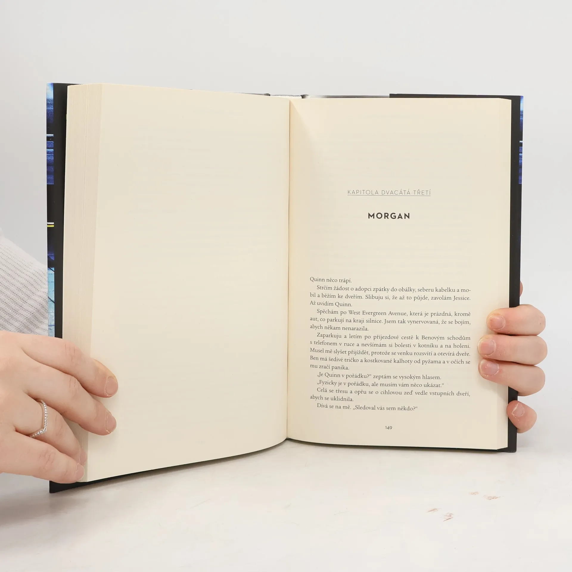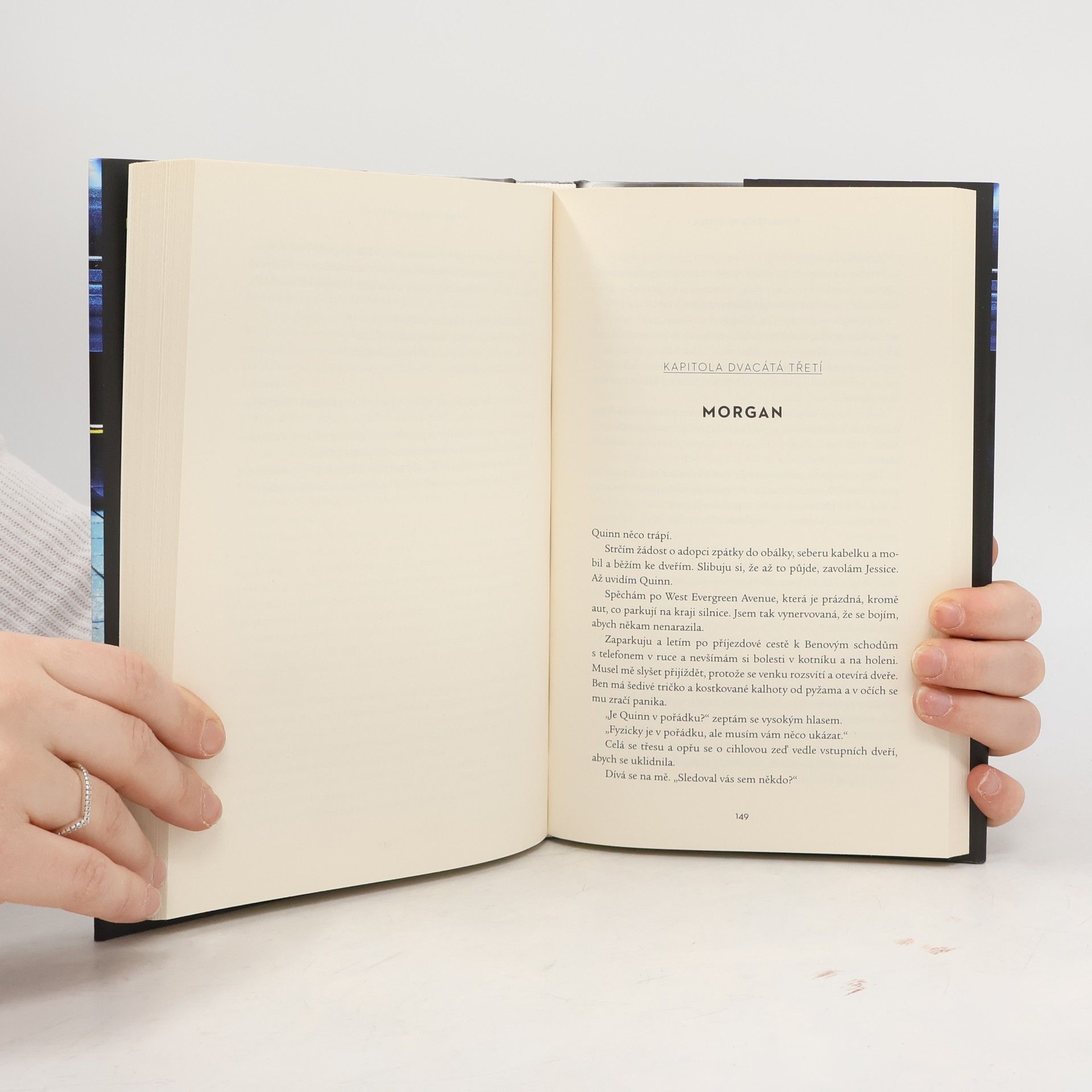 PŘEDÁ TI SVÉ DÍTĚ A PAK… SKOČÍ. Jeden krátký moment na nástupišti navždy změní dva osudy. Ale nic není, jak se na první pohled zdá… Ve zlomku vteřiny se Morganin život obrátí vzhůru nohama. Neznámá žena jí vloží do náruče své dítě a pak skočí pod rozjetý vlak. Morgan ji nikdy předtím neviděla, a nedokáže pochopit, co donutí člověka k tomu vzdát se vlastního dítěte a takovýmto způsobem spáchat sebevraždu. Když Morgan vyslýchá policie, dozvídá se, že žádný ze svědků nepotvrdil její výpověď. A jakmile vyšetřovatelé zjistí, že sama dlouho touží po dítěti, stává se okamžitě podezřelou. Aby dokázala svou nevinu, snaží se zjistit, co žena dělala v posledních dnech svého života. Pomalu jí začíná docházet, že Nicole Markhamová věřila, že jsou ona i její dítě v nebezpečí. Teď by mohlo to samé hrozit i Morgan. Byla Nicole novopečená matka bojující s paranoiou? Nebo jde o něco mnohem horšího?