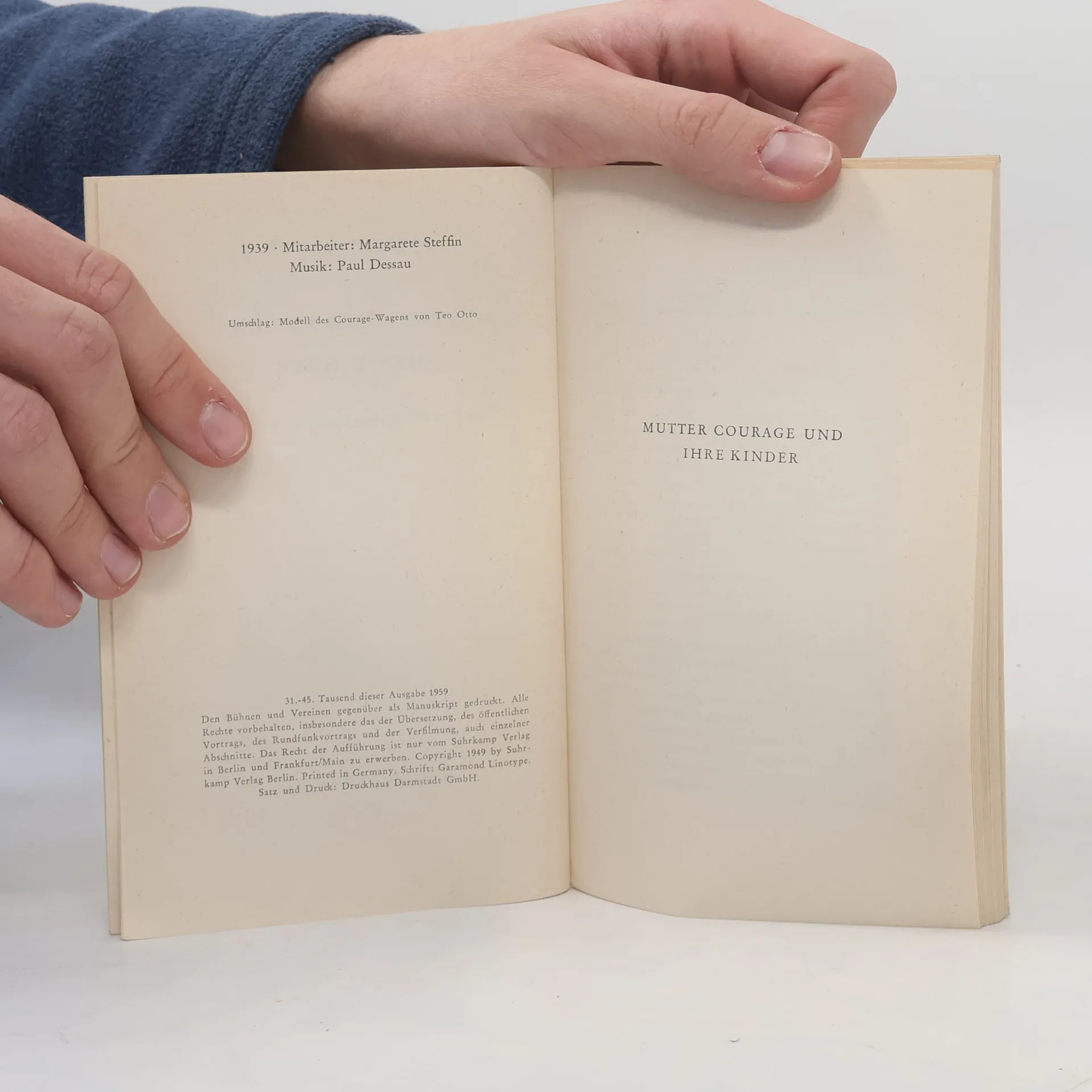 Mutter Courage und ihre Kinder, eine Chronik aus dem Dreißigjährigen Krieg. »Was eine Aufführung von Mutter Courage«, schrieb Brecht einmal, »hauptsächlich zeigen soll: Daß die großen Geschäfte in den Kriegen nicht von den kleinen Leuten gemacht werden. Daß der Krieg, der eine Fortführung der Geschäfte mit anderen Mitteln ist, die menschlichen Tugenden tödlich macht, auch für ihre Besitzer. Daß er darum bekämpft werden muß.«