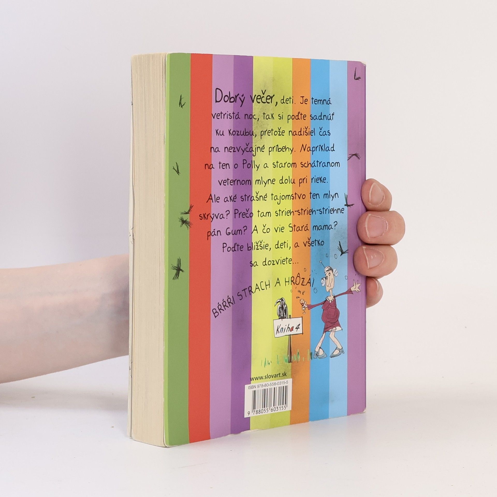Štvrté pokračovanie príbehov nechutného pána Guma. Začítajte sa do strašidelného rozprávania o Polly a starom schátranom mlyne dolu pri rieke. O tajomstve, ktoré skrýva a prečo v ňom strieh-strieh-striehne pán Gum! A čo všetko vlastne vie stará mama. No jednoducho hrôzy nad hrôzy.