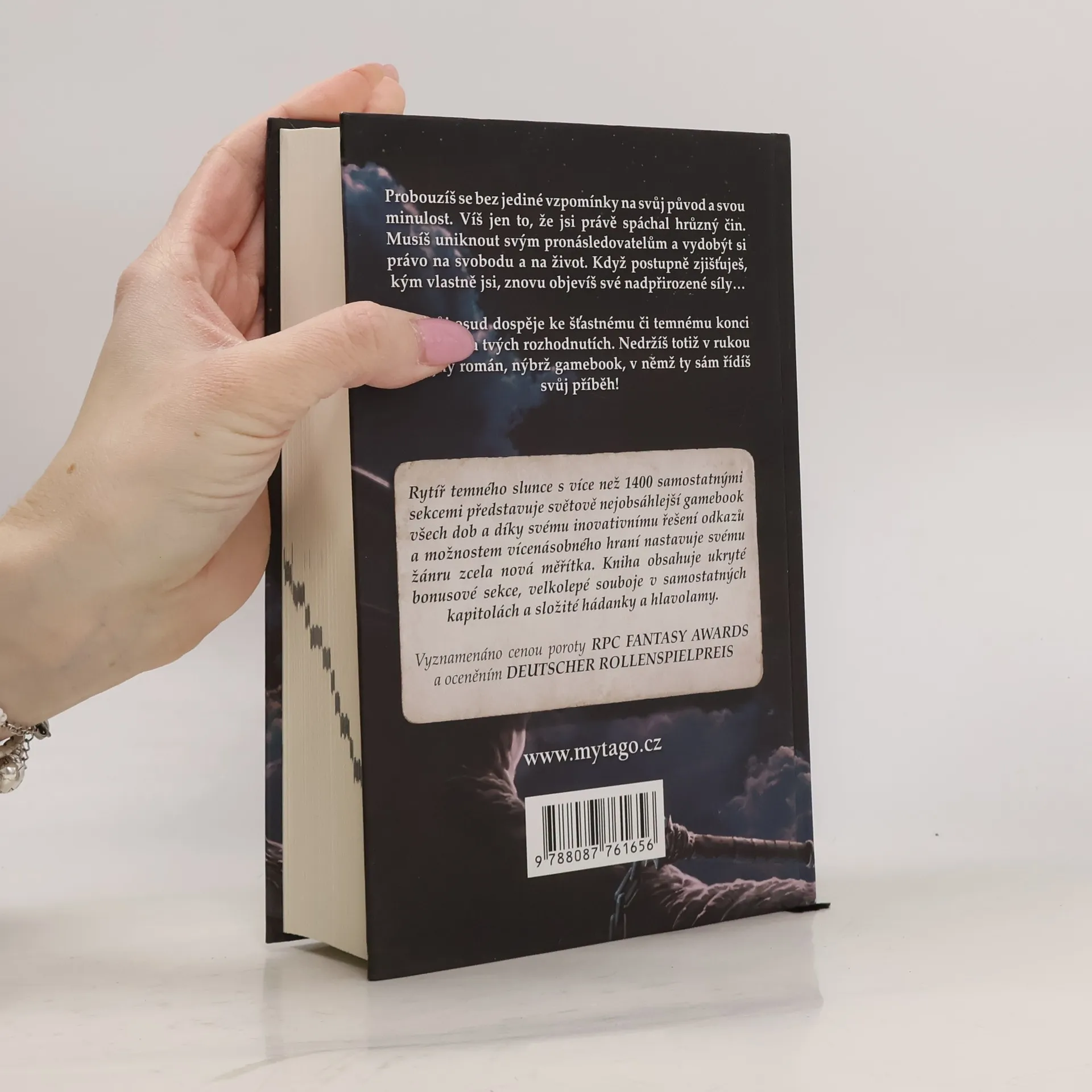 Probouzíš se bez jediné vzpomínky na svůj původ a svou minulost. Víš jen to, že jsi právě spáchal hrůzný čin. Musíš uniknout svým pronásledovatelům a vydobýt si právo na svobodu a na život. Když postupně zjišťuješ, kým vlastně jsi, znovu objevíš své nadpřirozené síly... Zda tvůj osud dospěje ke šťastnému či temnému konci záleží jen na tvých rozhodnutích. Nedržíš totiž v rukou obyčejný román, nýbrž gamebook, v němž ty sám řídíš svůj příběh! Rytíř temného slunce s více než 1350 samostatnými sekcemi představuje světově nejobsáhlejší gamebook všech dob a díky svému inovativnímu řešení odkazů a možnostem vícenásobného hraní nastavuje svému žánru zcela nová měřítka. Kniha obsahuje ukryté bonusové sekce, velkolepé souboje v samostatných kapitolách a složité hádanky a hlavolamy. Vyznamenáno cenou poroty RPC Fantasy Awards a oceněním Deutscher Rollenspielpreis. Druhá edice výpravného gamebooku přináší: - nové ilustrace (celkem v knize naleznete 47 celostránkových ilustrací a množství menších doplňkových) - mírné úpravy herního systému, drobné opravy a korekce původního vydání (zapracovali jsme veškerá errata z českého, německého i anglického vydání) - celou novou kapitolu (gamebook tak má nyní celkem 1405 sekcí) - další drobné bonusy