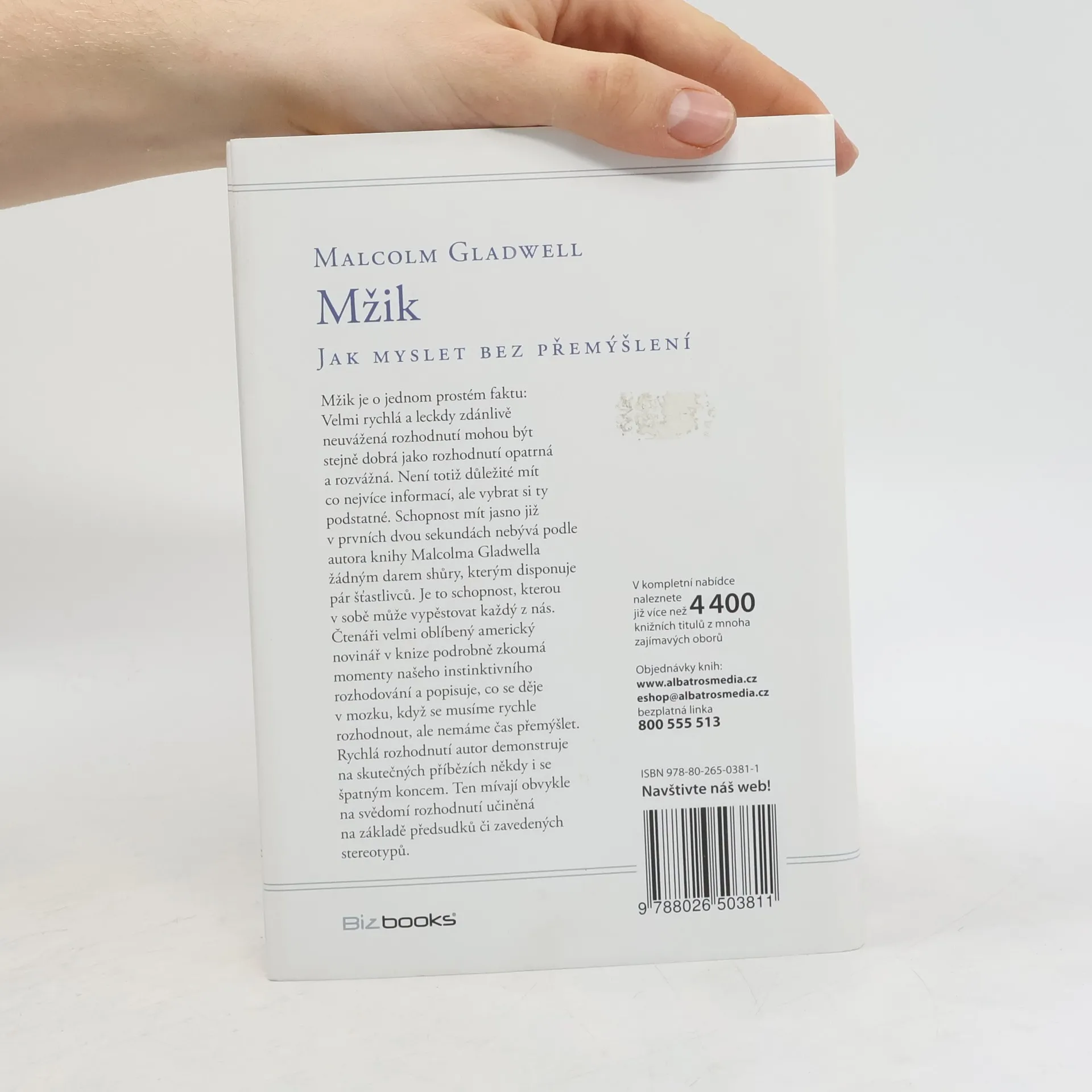 Jak myslet bez přemýšlení. Mžik je o jednom prostém faktu: Velmi rychlá a leckdy zdánlivě neuvážená rozhodnutí mohou být stejně dobrá jako rozhodnutí opatrná a rozvážná. Není totiž důležité mít co nejvíce informací, ale vybrat si ty podstatné. Schopnost mít jasno již v prvních dvou sekundách nebývá podle autora knihy Malcolma Gladwella žádným darem shůry, kterým disponuje pár šťastlivců. Je to schopnost, kterou v sobě může vypěstovat každý z nás. Čtenáři velmi oblíbený americký novinář v knize podrobně zkoumá momenty našeho instinktivního rozhodování a popisuje, co se děje v mozku, když se musíme rychle rozhodnout, ale nemáme čas přemýšlet. Rychlá rozhodnutí autor demonstruje na skutečných příbězích někdy i se špatným koncem. Ten mívají obvykle na svědomí rozhodnutí učiněná na základě předsudků či zavedených stereotypů.