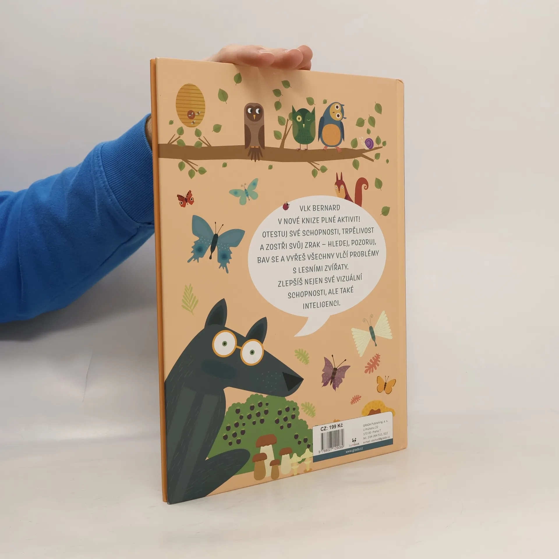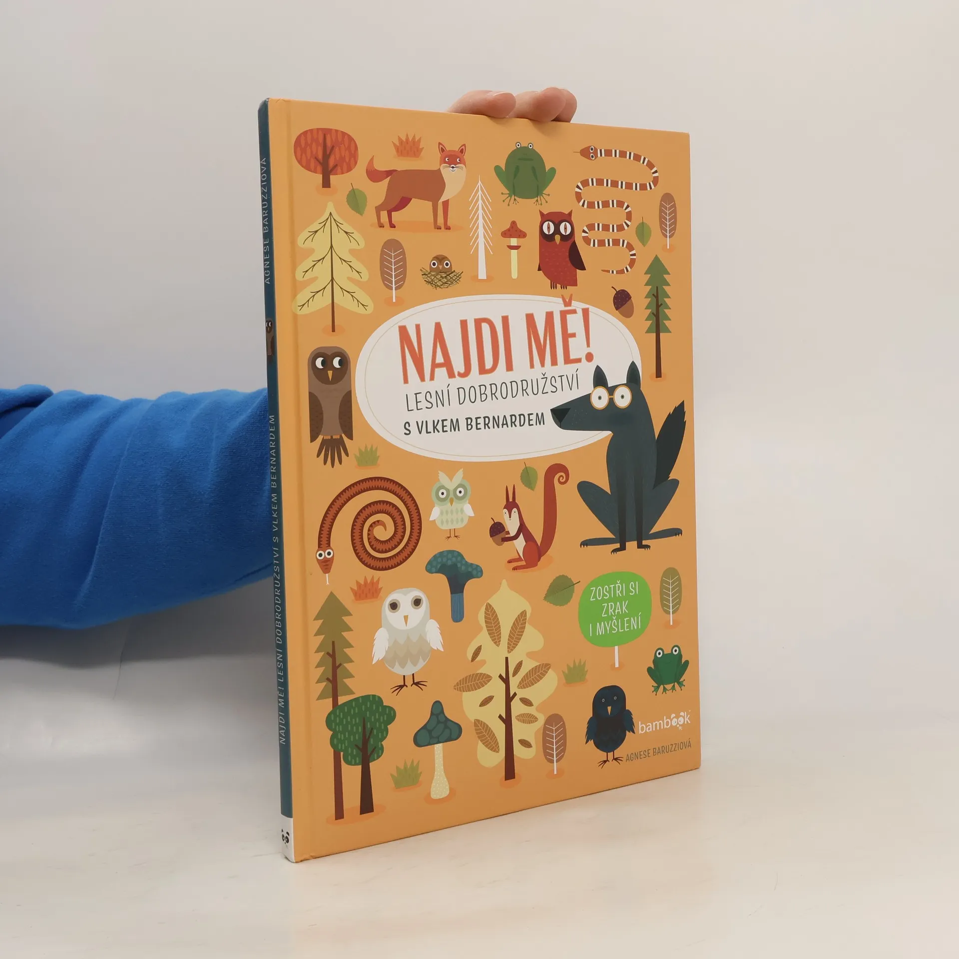Už jste někdy potkali vlka v brýlích? Ale Bernard je opravdu potřebuje. Kamarádka veverka by mu ráda pomohla a zlepšila jeho vidění - proto pro něj chystá různé hledací hry, které Bernarda baví a ještě mu ostří zrak. Děti si s knihou užijí spoustu legrace a zároveň budou trénovat svůj postřeh, trpělivost a soustředění.