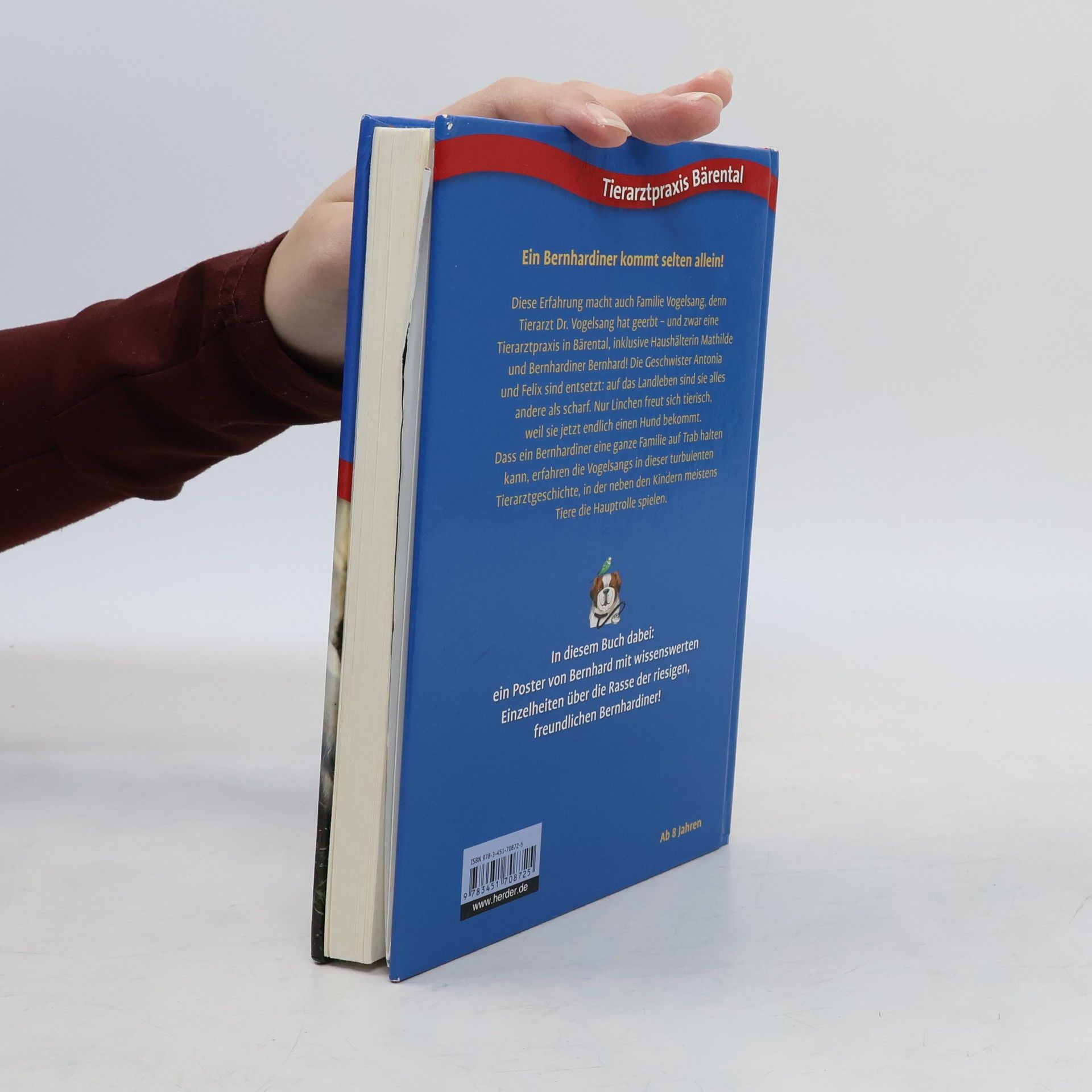 Ein Bernhardiner kommt selten allein. Diese Erfahrung macht Familie Vogelsang, denn Tierarzt Dr. Vogelsang hat geerbt – und zwar eine Tierarztpraxis in Bärental, inklusive Haushälterin Mathilde und Bernhardiner Bernhard! Die Geschwister Antonia und Felix sind entsetzt: Auf das Landleben sind sie alles andere als scharf. Nur Linchen freut sich tierisch, weil sie jetzt endlich einen Hund bekommt. Dass ein Bernhardiner eine ganze Familie auf Trab halten kann, erfahren die Vogelsangs in diesem Band.