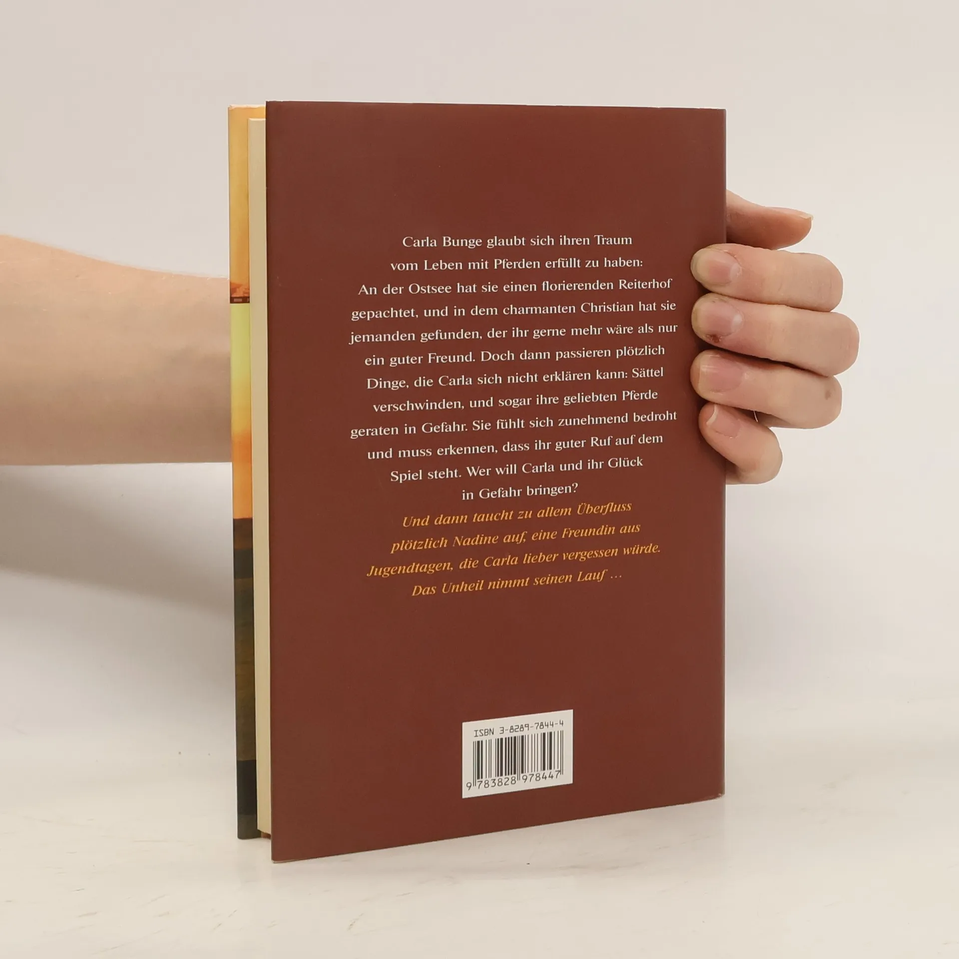 Carla Bunge glaubt sich ihren Traum vom Leben mit Pferden erfüllt zu haben: An der Ostsee hat sie einen florierenden Reiterhof gepachtet, und in dem charmanten Christian hat sie jemanden gefunden, der ihr gerne mehr wäre als nur ein guter Freund. Doch dann passieren plötzlich Dinge, die Carla sich nicht erklären kann: Sättel verschwinden, und sogar ihre geliebten Pferde geraten in Gefahr. Sie fühlt sich zunehmend bedroht und muss erkennen, dass ihr guter Ruf auf dem Spiel steht. Wer will Carla und ihr Glück in Gefahr bringen? Und dann taucht zu allem Überfluss plötzlich Nadine auf, eine Freundin aus Jugendtagen, die Carla lieber vergessen würde. Das Unheil nimmt seinen Lauf.