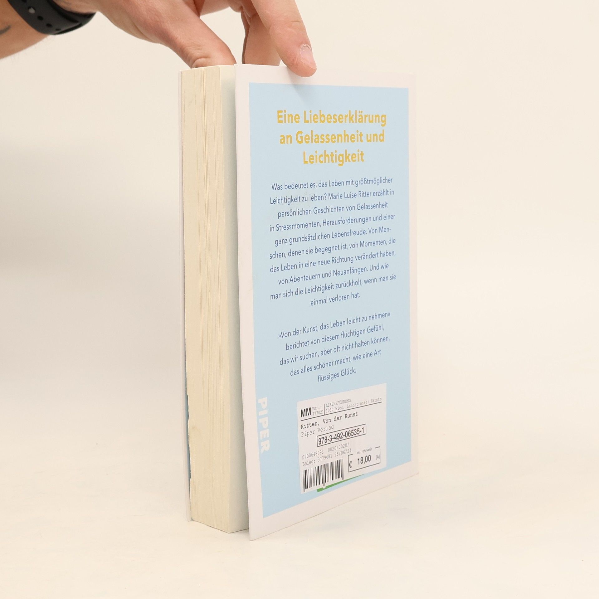 Was bedeutet es, das Leben mit größtmöglicher Leichtigkeit zu leben? Marie Luise Ritter erzählt in persönlichen Geschichten von Gelassenheit in Stressmomenten, Herausforderungen und einer ganz grundsätzlichen Lebensfreude. Von Menschen, denen sie begegnet ist, von Momenten, die das Leben in eine neue Richtung verändert haben, von Abenteuern und Neuanfängen. Und wie man sich die Leichtigkeit zurückholt, wenn man sie einmal verloren hat. »Von der Kunst, das Leben leicht zu nehmen« berichtet von diesem flüchtigen Gefühl, das wir suchen, aber oft nicht halten können, das alles schöner macht, wie eine Art flüssiges Glück. Das perfekte Buch für den Sommer und die perfekte Strandlektüre!