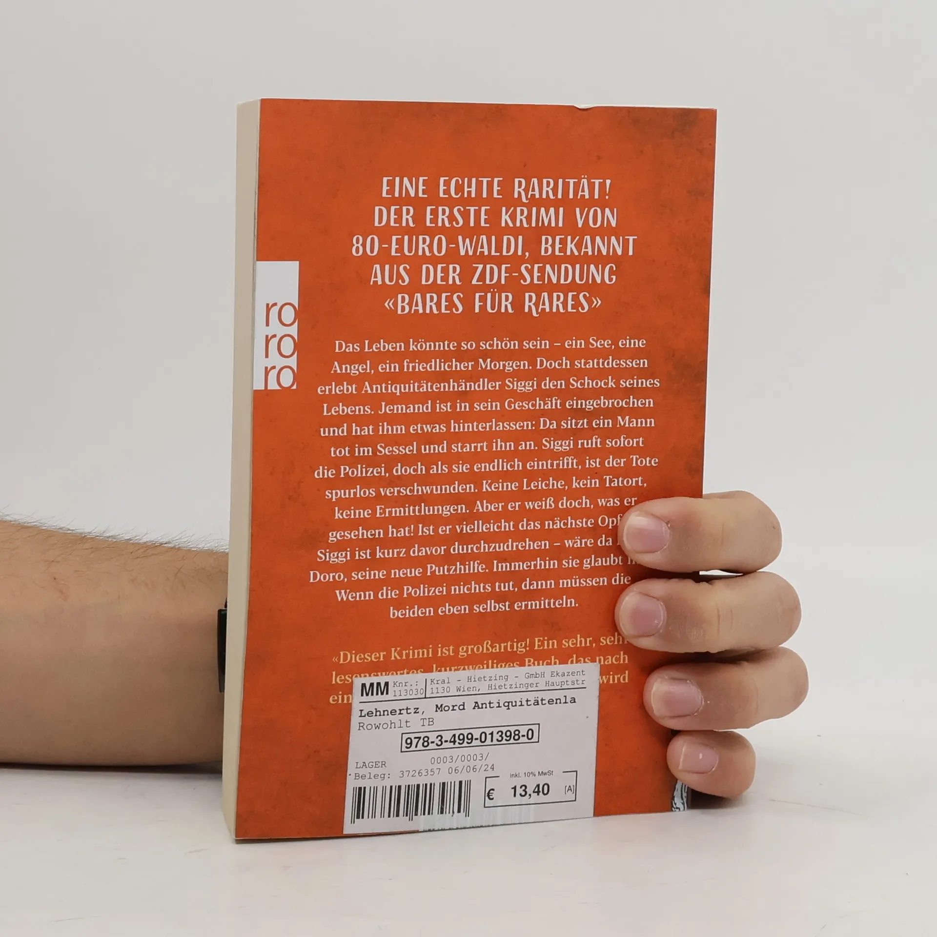Eine echte Rarität! Der erste Krimi von 80-Euro-Waldi, bekannt aus der ZDF-Sendung «Bares für Rares» Das Leben könnte so schön sein – ein See, eine Angel, ein friedlicher Morgen. Doch stattdessen erlebt Antiquitätenhändler Siggi den Schock seines Lebens. Jemand ist in sein Geschäft eingebrochen und hat ihm etwas hinterlassen: Da sitzt ein Mann tot im Sessel und starrt ihn an. Siggi ruft sofort die Polizei, doch als sie endlich eintrifft, ist der Tote spurlos verschwunden. Keine Leiche, kein Tatort, keine Ermittlungen. Aber er weiß doch, was er gesehen hat! Ist er vielleicht das nächste Opfer? Siggi ist kurz davor durchzudrehen – wäre da nicht Doro, seine neue Putzhilfe. Immerhin sie glaubt ihm. Wenn die Polizei nichts tut, dann müssen die beiden eben selbst ermitteln. «Dieser Krimi ist großartig! Ein sehr, sehr lesenswertes, kurzweiliges Buch, das nach einer Fortsetzung verlangt. Vielleicht wird es sogar mal verfilmt.» Horst Lichter