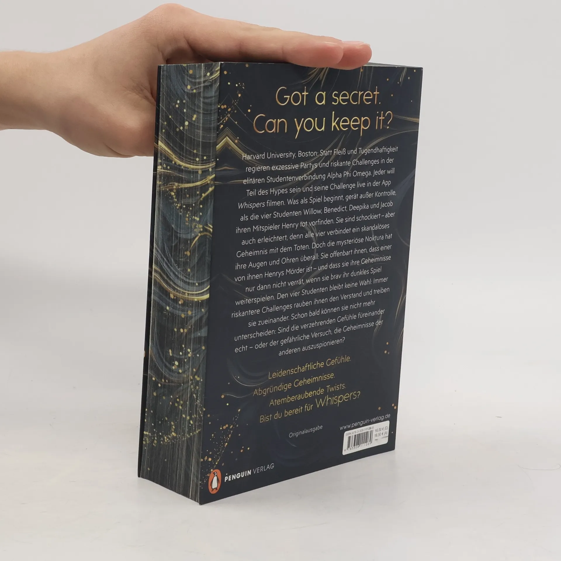 Vier Elitestudenten, vier tödliche Geheimnisse und riskante Challenges – Bestsellerautorin Ayla Dade garantiert Nervenkitzel, Spice und Dark-Academia-VibesSie dürfen einander nicht vertrauen. Aber was passiert, wenn sie sich näherkommen, als gut für sie ist?Harvard University, Boston: Statt Fleiß und Tugendhaftigkeit regieren exzessive Partys und riskante Challenges in der elitären Studentenverbindung Alpha Phi Omega. Jeder will Teil des Hypes sein und seine Challenge live in der App »Whispers« filmen. Was als Spiel beginnt, gerät außer Kontrolle, als die vier Studenten Willow, Benedict, Deepika und Jacob in Langdell Hall ihren Mitspieler Henry tot vorfinden. Sie sind schockiert – aber auch erleichtert, denn alle vier verbindet ein skandalöses Geheimnis mit dem Toten. Doch die mysteriöse Noktura hat ihre Augen und Ohren überall: Sie offenbart ihnen, dass einer von ihnen Henrys Mörder ist – und dass sie ihre Geheimnisse nur dann nicht verrät, wenn sie brav ihr dunkles Spiel weiterspielen. Den vier Studenten bleibt keine Wahl: Immer riskantere Challenges rauben ihnen den Verstand und treiben sie zueinander. Schon bald können sie nicht mehr unterscheiden: Sind die verzehrenden Gefühle füreinander echt – oder der gefährliche Versuch, die Geheimnisse der anderen auszuspionieren?