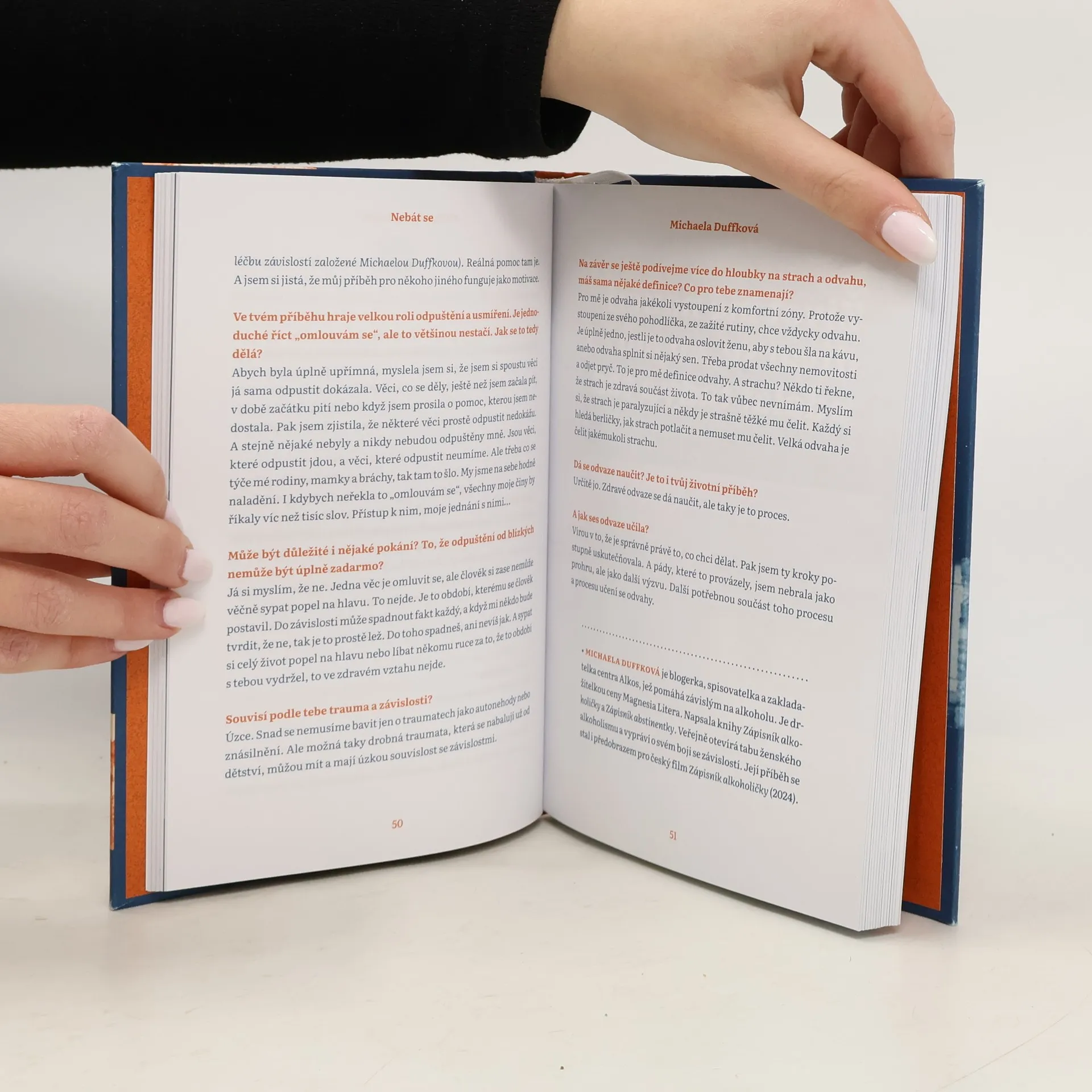 Strach je základní lidská emoce, kterou nás vybavila evoluce, abychom přežili. Může mít různé podoby od obav, přes hrůzu až po panické zděšení. Ne vždy je ale strach prospěšný, a ne vždy ho zvládáme. Kolik odvahy je potřeba pro dosažení upřímné komunikace nebo ke změně vlastního názoru? K dosažení blízkosti či přijetí odloučení? A jak moc se tyto překážky všedního dne liší od život ohrožujících nebezpečí, které číhají ve válečném konfliktu, na kolmé skalní stěně nebo při boji s alkoholismem? Známé osobnosti veřejného života, ale i nezlomení hrdinové všedních dnů se v rozhovorech zamýšlí nad tím, jak bojovat se strachem a kde hledat odvahu. Příběhy rozhovorů se zabývají i těžkými tématy a nesnadnými zážitky, primárně ale působí nadějeplně a inspirativně. Zachycené osudy osvětlují cestu k tomu si svůj strach přiznat, zpracovat ho a probudit vlastní odvahu. Jiří Pasz je fotograf, dokumentarista, novinář a humanitární pracovník. Marianna Stránská je multimediální výtvarnice zaměřující se ve své tvorbě na diváka jako specifickou složku díla.