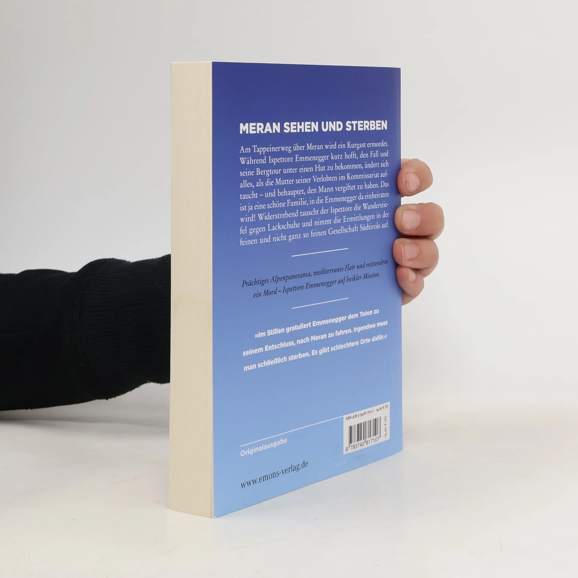 Spritzige Lektüre mit Spannung und Humor: Am Tappeinerweg über Meran wird ein Kurgast ermordet. Während Ispettore Emmenegger kurz hofft, den Fall und seine Bergtour unter einen Hut zu bekommen, ändert sich alles, als die Mutter seiner Verlobten im Kommissariat auftaucht – und behauptet, den Mann vergiftet zu haben. Das ist ja eine schöne Familie, in die Emmenegger da einheiraten wird! Widerstrebend tauscht der Ispettore die Wanderstiefel gegen Lackschuhe und nimmt die Ermittlungen in der feinen und nicht ganz so feinen Gesellschaft Südtirols auf.
