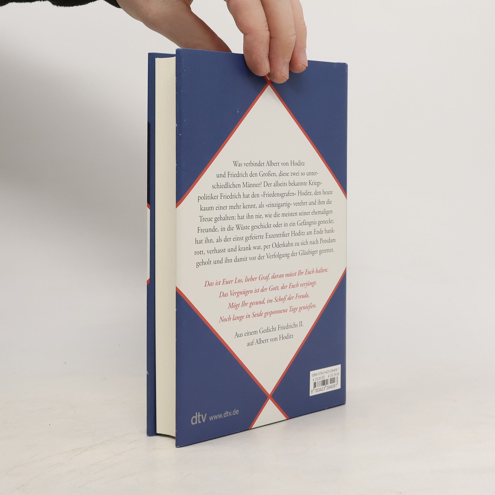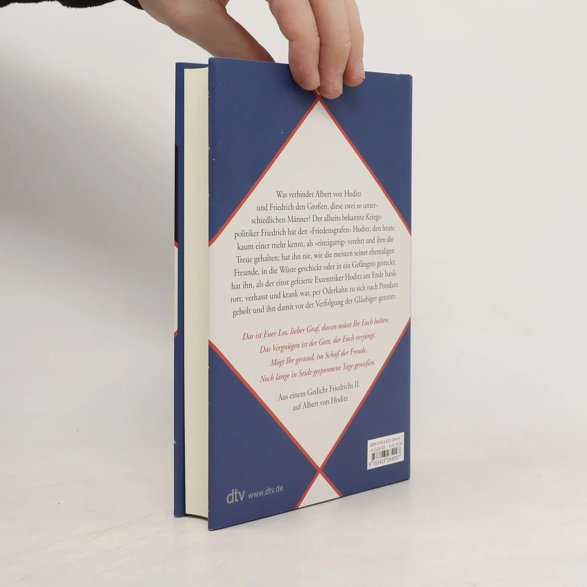 Eine unbekannte Freundschaft des großen Preußenkönigs Albert von Hoditz war ein Genießer und Lebensreformer, der sein Schloss an der umkämpften Grenze zwischen Österreich und Preußen zu einem »Arkadien in Mähren« machen wollte. Seine Untertanen sollten Künstler werden. Auch Friedrich der Große wurde auf Hoditz aufmerksam. Für Friedrich bedeutete dessen freie Existenz in Rosswald, das er zweimal besuchte, die Erinnerung an ein verpasstes eigenes Leben. Legendär ist ein Freiluftschachspiel der beiden mit »lebenden Figuren«. Friedrichs Beziehung zu Hoditz, auf den er zwei Gedichte schrieb, stellt den strengen, pflichtbewussten König, den der „exzentrische Epikureer“ Hoditz auch in seinen orientalischen Harem führte, in ein neues Licht und dürfte auch Kenner überraschen.