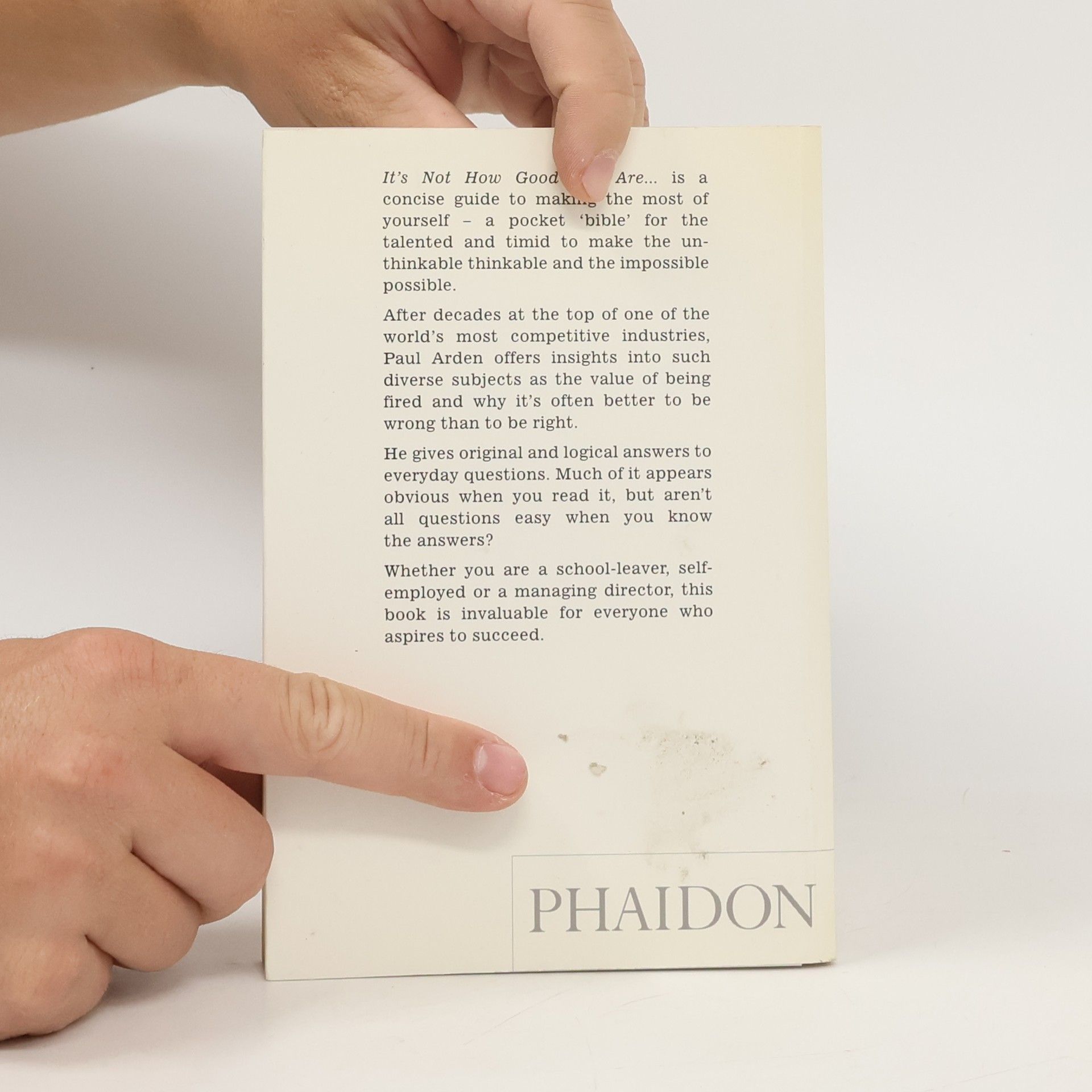 It’s Not How Good You Are, It’s How Good You Want to Be is a handbook of how to succeed in the world: a pocket bible for the talented and timid alike to help make the unthinkable thinkable and the impossible possible.The world’s top advertising guru, Paul Arden, offers up his wisdom on issues as diverse as problem solving, responding to a brief, communicating, playing your cards right, making mistakes, and creativity – all endeavors that can be applied to aspects of modern life.This uplifting and humorous little book provides a unique insight into the world of advertising and is a quirky compilation of quotes, facts, pictures, wit and wisdom – all packed into easy-to-digest, bite-sized spreads. If you want to succeed in life or business, this book is a must.