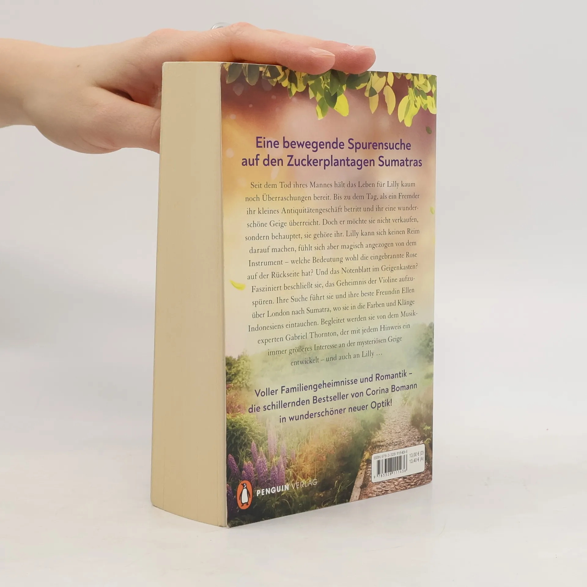 Eine bewegende Spurensuche auf den Zuckerplantagen Sumatras Seit dem Tod ihres Mannes hält das Leben für Lilly kaum noch Überraschungen bereit. Bis zu dem Tag, als ein unbekannter Mann ihr kleines Antiquitätengeschäft betritt und ihr eine wunderschöne Geige überreicht. Doch er möchte sie nicht verkaufen, sondern behauptet, sie gehöre ihr. Lilly kann sich keinen Reim darauf machen, fühlt sich aber magisch angezogen von dem Instrument – welche Bedeutung wohl die eingebrannte Rose auf der Rückseite hat? Und das Notenblatt im Geigenkasten? Fasziniert beschließt sie, das Geheimnis der Violine aufzuspüren. Ihre Suche führt sie und ihre beste Freundin Ellen über London nach Sumatra, wo sie in die Farben und Klänge Indonesiens eintauchen. Begleitet werden sie von dem Musikexperten Gabriel Thornton, der mit jedem Hinweis ein immer größeres Interesse an der mysteriösen Geige entwickelt – und auch an Lilly … Für noch mehr große Gefühle und bewegende Schicksale lesen Sie auch die Waldfriede-Saga der Bestsellerautorin: 1. Sternstunde. Die Schwestern vom Waldfriede 2. Leuchtfeuer. Die Schwestern vom Waldfriede 3. Sturmtage. Die Schwestern vom Waldfriede 4. Wunderzeit. Die Schwestern vom Waldfriede