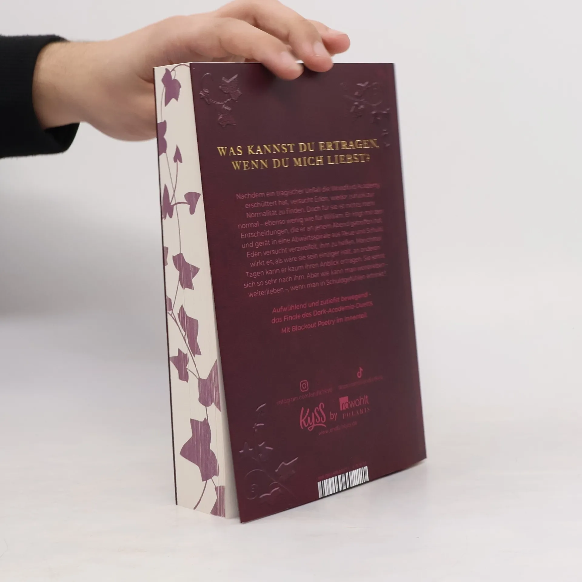 Das herzzerreißende Finale des Dark-Academia-Duetts. Bist du bereit? Nachdem ein tragischer Unfall die Woodford Academy erschüttert hat, versucht Eden, wieder zurück zur Normalität zu finden. Doch für sie ist nichts mehr normal – ebenso wenig wie für William. Er ringt mit den Entscheidungen, die er an jenem Abend getroffen hat, und gerät in eine Abwärtsspirale aus Reue und Schuld. Eden versucht verzweifelt, ihm zu helfen. Manchmal wirkt es, als wäre sie sein einziger Halt, an anderen Tagen kann er kaum ihren Anblick ertragen. Sie sehnt sich so sehr nach ihm. Aber wie kann man weiterleben – weiterlieben –, wenn man in Schuldgefühlen ertrinkt? Aufwühlend und zutiefst bewegend – die Fortsetzung des Spiegel-Bestsellers «Dark Ivy - Wenn ich falle». Mit Blackout Poetry im Innenteil.