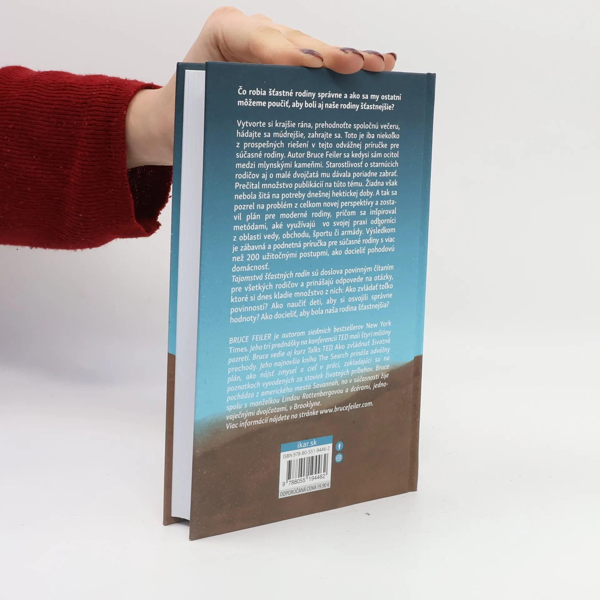 Návod, ako docieliť pohodovú domácnosť Čo robia šťastné rodiny správne a ako sa my ostatní môžeme poučiť, aby boli aj naše rodiny šťastnejšie? Vytvorte si krajšie rána, prehodnoťte spoločnú večeru, hádajte sa múdrejšie, zahrajte sa. Toto je iba niekoľko z prospešných riešení v tejto odvážnej príručke pre súčasné rodiny. Autor Bruce Feiler sa kedysi sám ocitol medzi mlynskými kameňmi. Starostlivosť o starnúcich rodičov aj o malé dvojčatá mu dávali poriadne zabrať. Prečítal množstvo publikácií na túto tému. Žiadna však nebola šitá na potreby dnešnej hektickej doby. A tak sa pozrel na problém z celkom novej perspektívy a zostavil plán pre moderné rodiny, pričom sa inšpiroval metódami, aké využívajú vo svojej praxi odborníci z oblasti vedy, obchodu, športu či armády. Výsledkom je zábavná a podnetná príručka pre súčasné rodiny s viac ako 200 užitočnými postupmi, ako docieliť pohodovú domácnosť. Tajomstvá šťastných rodín sú doslova povinným čítaním pre všetkých rodičov a prinášajú odpovede na otázky, ktoré si dnes kladie množstvo z nich: Ako zvládať toľko povinnosti? Ako naučiť deti, aby si osvojili správne hodnoty? Ako docieliť, aby naša rodina bola šťastnejšia? Z anglického originálu The Secret of Happy Families (William Morrow. An Imprint of HarperCollinsPublishers, 2013 USA) preložil Martin Štulrajter.