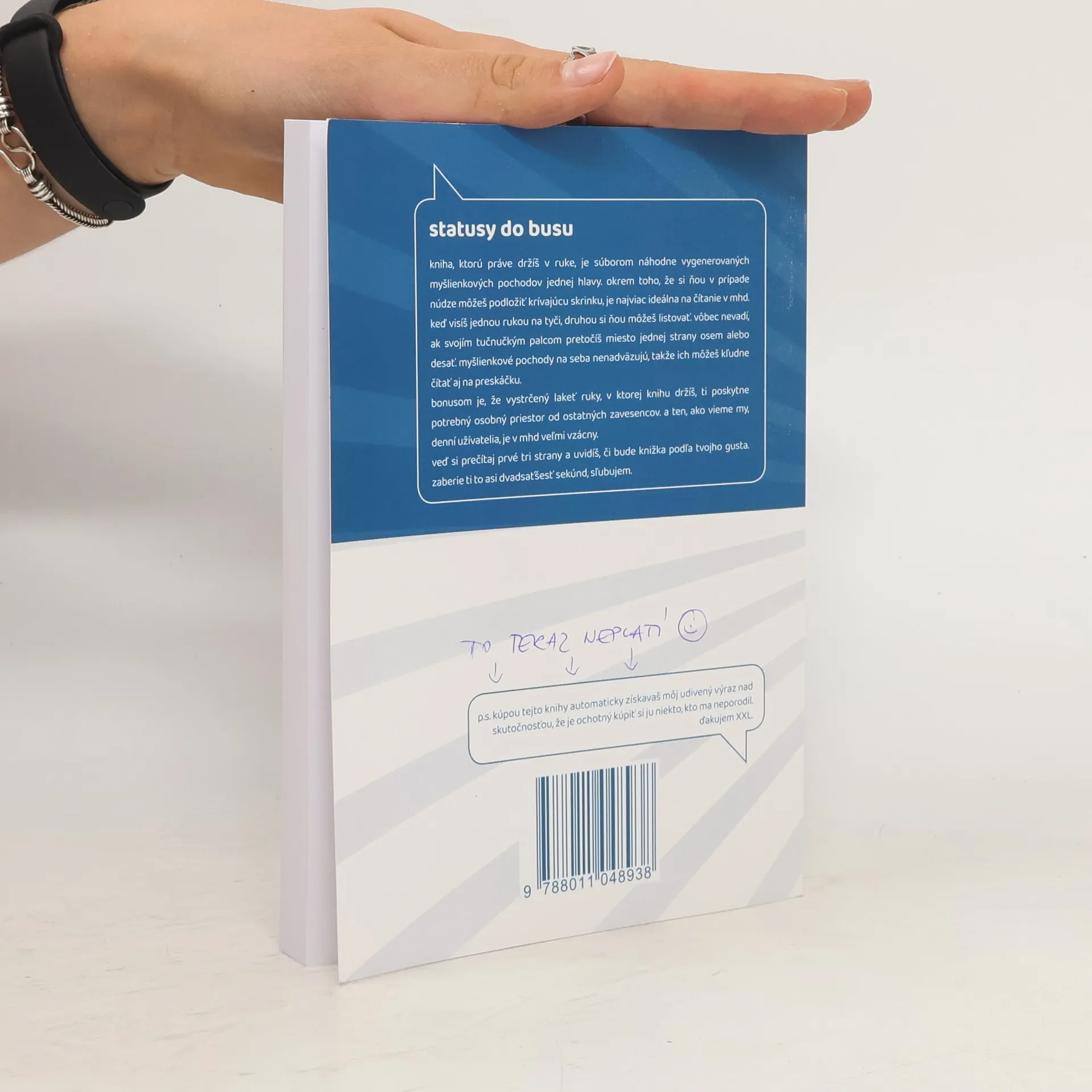 kniha, ktorú práve držíš v ruke, je súborom náhodne vygenerovaných myšlienkových pochodov jednej hlavy. okrem toho, že si ňou v prípade núdze môžeš podložiť krívajúcu skrinku, je najviac ideálna na čítanie v mhd. keď visíš jednou rukou na tyči, druhou si ňou môžeš listovať. vôbec nevadí, ak svojím tučnučkým palcom pretočíš miesto jednej strany osem alebo desať. myšlienkové pochody na seba nenadväzujú, takže ich môžeš kľudne čítať aj na preskáčku. bonusom je, že vystrčený lakeť ruky, v ktorej knihu držíš, ti poskytne potrebný osobný priestor od ostatných zavesencov. a ten, ako vieme my, denní užívatelia, je v mhd veľmi vzácny. veď si prečítaj prvé tri strany a uvidíš, či bude knižka podľa tvojho gusta. zaberie ti to asi dvadsaťšesť sekúnd, sľubujem. zivotsopsom, #cotrapinaszeny, #vtipnyzivotspravcu, #beznyzivotshumorom, #vtipnestatusynafb