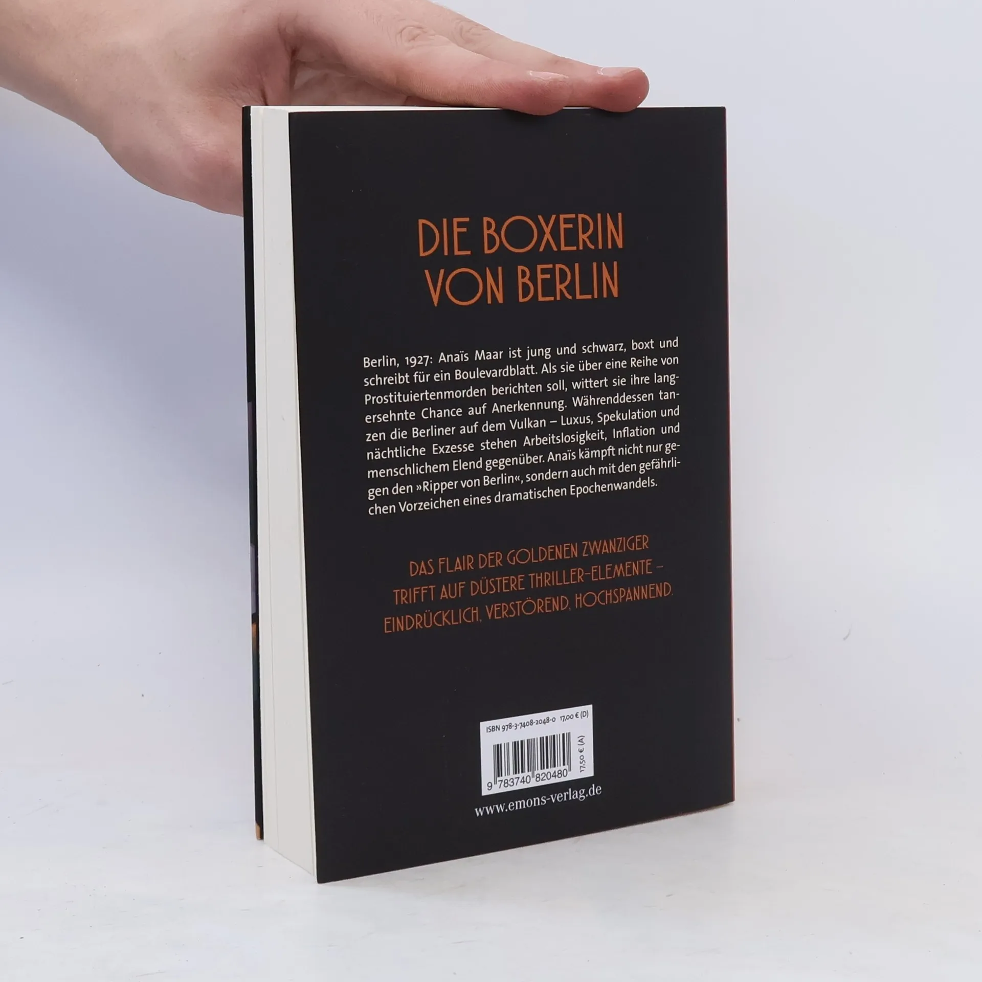 Zeitgeschichtliches Flair trifft auf düstere Thriller-Elemente – eindrücklich, verstörend, hochspannend. Berlin, 1927: Anaïs Maar ist jung und schwarz, boxt und schreibt für ein Boulevardblatt. Als sie über eine Reihe von Prostituiertenmorden berichten soll, wittert sie ihre langersehnte Chance auf Anerkennung. Währenddessen tanzen die Berliner auf dem Vulkan – Luxus, Spekulation und nächtliche Exzesse stehen Arbeitslosigkeit, Inflation und menschlichem Elend gegenüber. Anaïs kämpft nicht nur gegen den »Ripper von Berlin«, sondern auch mit den gefährlichen Vorzeichen eines dramatischen Epochenwandels.