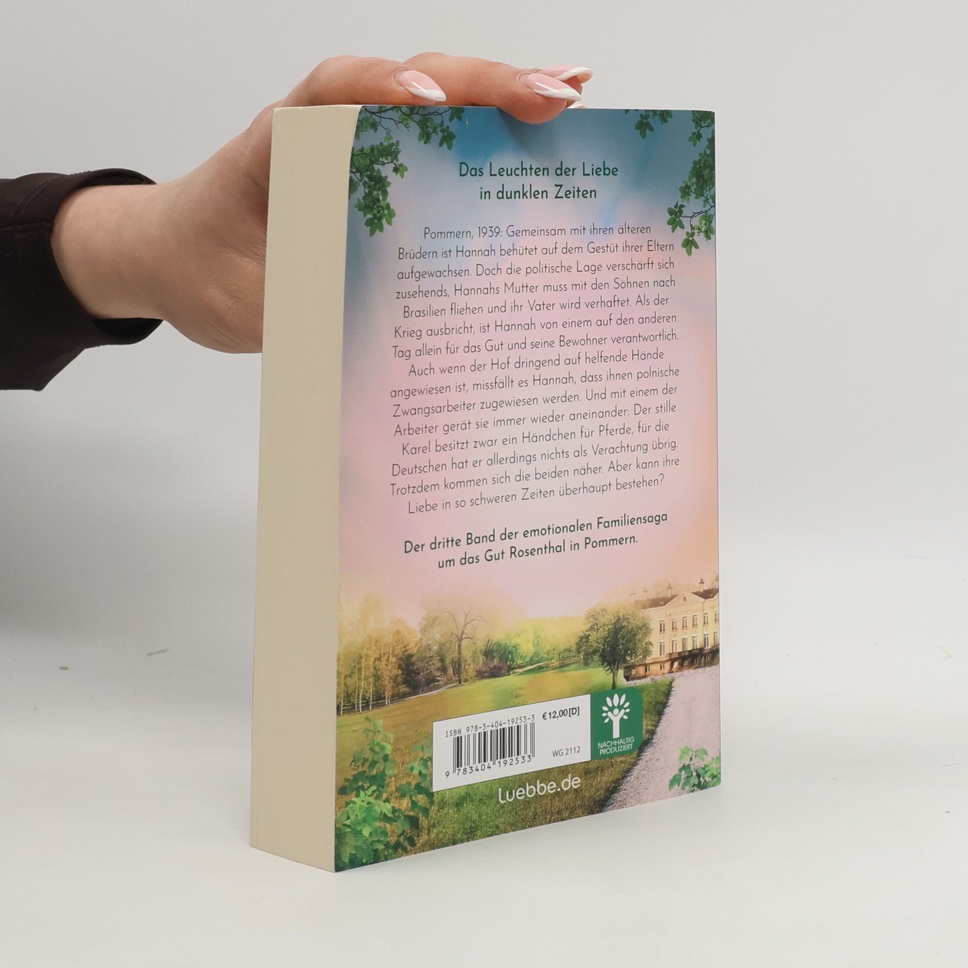 Das Leuchten der Liebe in dunklen Zeiten Pommern, 1939: Gemeinsam mit ihren älteren Brüdern ist Hannah behütet auf dem Gestüt ihrer Eltern aufgewachsen. Doch die politische Lage verschärft sich zusehends, Hannahs Mutter muss mit den Söhnen nach Brasilien fliehen und ihr Vater wird verhaftet. Als der Krieg ausbricht, ist Hannah von einem auf den anderen Tag allein für das Gut und seine Bewohner verantwortlich. Auch wenn Hannah dringend auf helfende Hände angewiesen ist, missfällt es ihr, dass dem Hof polnische Zwangsarbeiter zugewiesen werden. Und mit einem der Arbeiter gerät sie immer wieder aneinander: Der stille Karel besitzt zwar ein Händchen für Pferde, für die Deutschen hat er allerdings nichts als Verachtung übrig. Trotzdem kommen sich die beiden näher. Aber kann ihre Liebe in so schweren Zeiten überhaupt bestehen? Der dritte Band der emotionalen Familiensaga um das Gut Rosenthal in Pommern. Ein Lesegenuss für alle Fans von Modehaus Haynbach und Grandhotel Schwarzenberg.