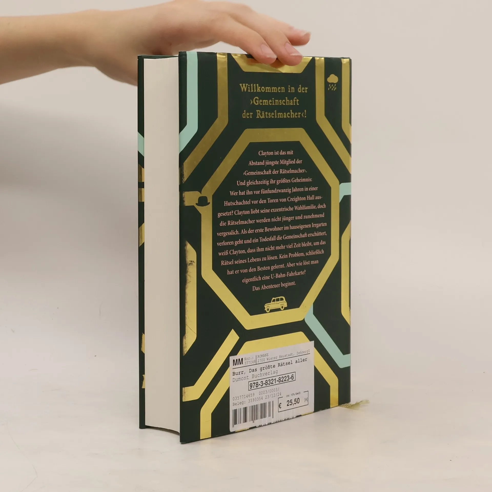 Clayton Stumper ist ein Rätsel. Aufgewachsen in den heiligen (und etwas staubigen) Hallen der mysteriösen ›Gemeinschaft der Rätselmacher‹ weiß er mit seinen Anfang zwanzig so einiges über verschlüsselte Botschaften, verwunschene Labyrinthe und geniale Menschen jenseits der Achtzig. Weniger versteht er von Menschen seines Alters oder vom Leben außerhalb des alten Hauses im verschlafenen Bedfordshire. Das größte Mysterium ist für Clayton jedoch Clayton selbst: Wer ist er eigentlich? Woher kommt er? Und wer hat ihn vor 23 Jahren auf den Stufen der ›Gemeinschaft der Rätselmacher‹ ausgesetzt? Als seine Ziehmutter Pippa Allsbrock, ihres Zeichens unangefochtene Königin der Kreuzworträtsel und Vorsitzende der Gesellschaft, stirbt, hinterlässt sie ihm ein letztes Rätsel, dessen Lösung Clayton nicht nur die Frage nach seiner Herkunft beantworten, sondern ihm auch den Weg ins Leben weisen soll. Doch die echte Welt ohne doppelten Boden stellt den wohl ältesten 23-jährigen der Welt vor so manche Herausforderung – und so beginnt das Abenteuer seines Lebens.