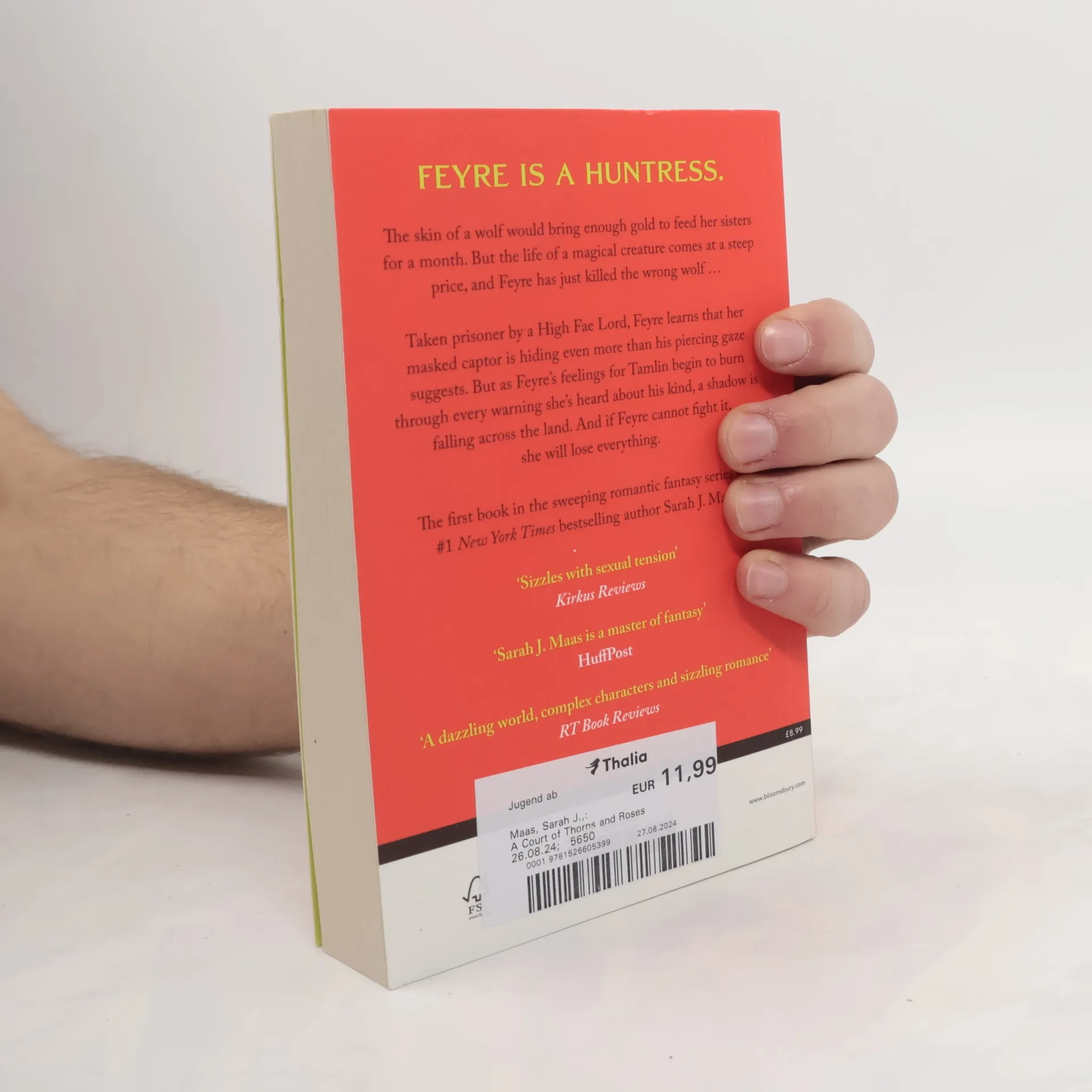 The first instalment of the GLOBAL PHENOMENON, romantic fantasy epic and TikTok sensation, ACOTAR. From multi-million and #1 Sunday Times bestselling author Sarah J. Maas. Maas has established herself as a fantasy fiction titan - Time Think Game of Thrones meets Buffy the Vampire Slayer with a drizzle of E.L. James - Telegraph Spiced with slick plotting and atmospheric world-building ... a page-turning delight - Guardian Sarah J. Maas does not disappoint . To be devoured with relish - Mail ****** Feyre is a huntress. And when she sees a deer in the forest being pursued by a wolf, she kills the predator and takes its prey to feed herself and her family. But the wolf was not what it seemed, and Feyre cannot predict the high price she will have to pay for its death... Dragged away from her family for the murder of a faerie, Feyre discovers that her captor, his face obscured by a jewelled mask, is hiding even more than his piercing green eyes suggest. As Feyre's feelings for Tamlin turn from hostility to passion, she learns that the faerie lands are a far more dangerous place than she realized. And Feyre must fight to break an ancient curse, or she will lose him forever. _________________________ Sarah J. Maas's books have sold millions of copies worldwide and have been translated into 38 languages. Discover the tantalising, sweeping romantic fantasy for yourself.