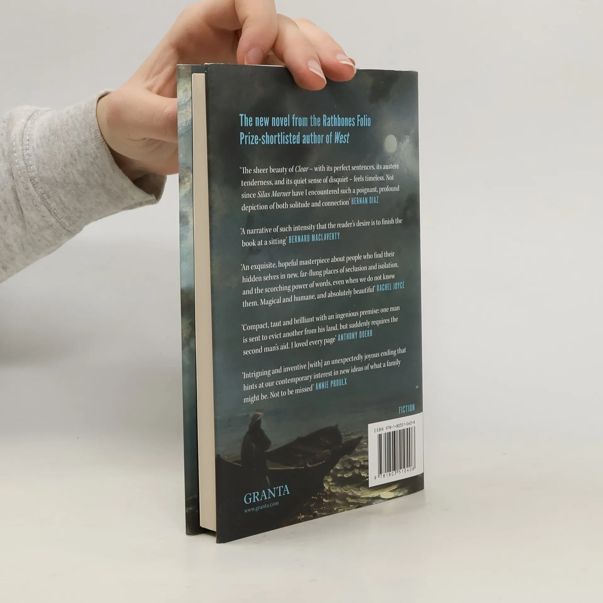 1843. On a remote Scottish island, Ivar, the sole occupant, leads a life of quiet isolation until the day he finds a man unconscious on the beach below the cliffs. The newcomer is John Ferguson, an impoverished church minister sent to evict Ivar and turn the island into grazing land for sheep. Unaware of the stranger's intentions, Ivar takes him into his home, and in spite of the two men having no common language, a fragile bond begins to form between them. Meanwhile on the mainland, John's wife Mary anxiously awaits news of his mission.Against the rugged backdrop of this faraway spot beyond Shetland, Carys Davies's intimate drama unfolds with tension and tenderness: a touching and crystalline study of ordinary people buffeted by history and a powerful exploration of the distances and connections between us. Perfectly structured and surprising at every turn, Clear is a marvel of storytelling, an exquisite short novel by a master of the form.