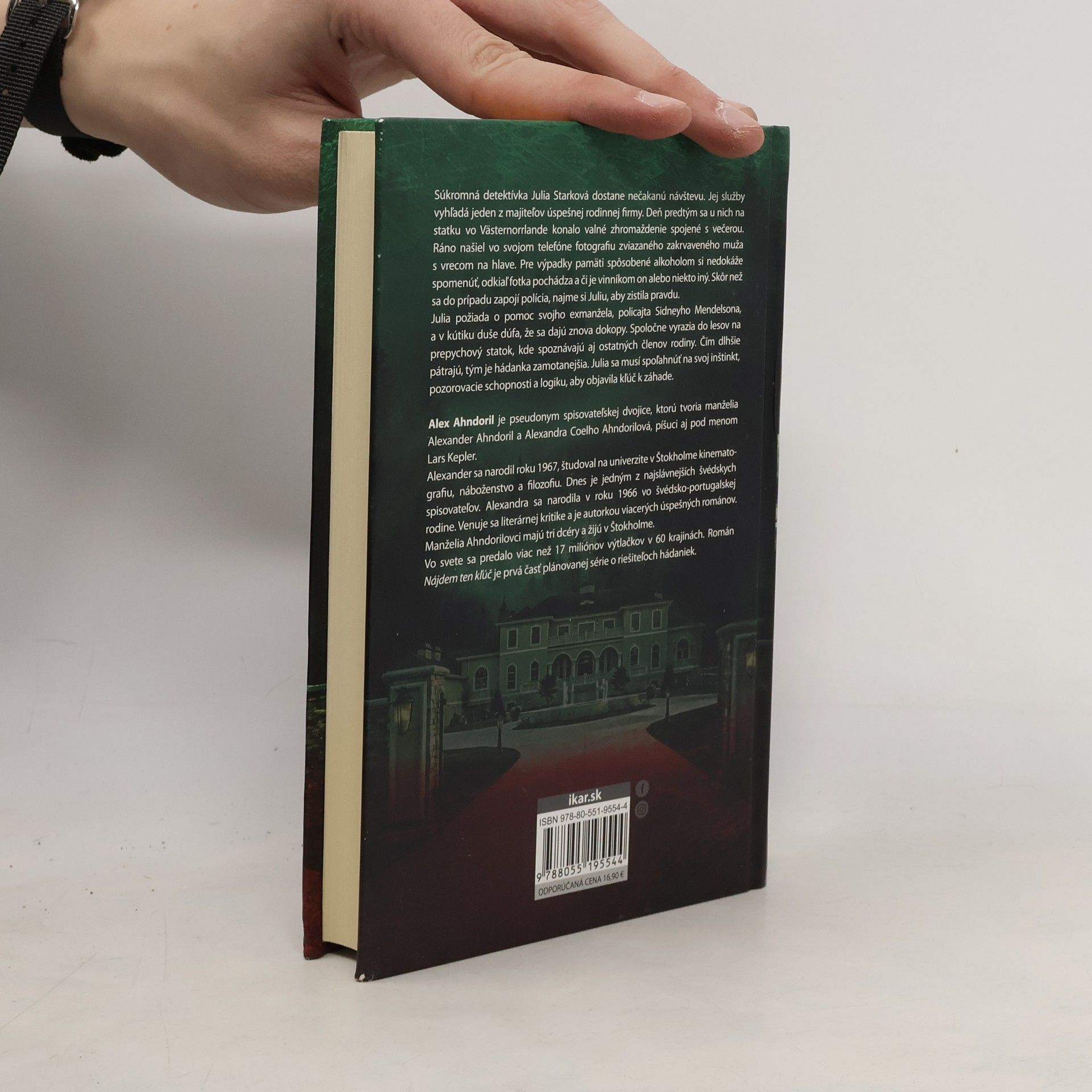 Záhadná vražda, neznámy páchateľ, šesť podozrivých Súkromná detektívka Julia Starková dostane nečakanú návštevu. Jej služby vyhľadá jeden z majiteľov úspešnej rodinnej firmy. Deň predtým sa u nich na statku vo Västernorrlande konalo valné zhromaždenie spojené s večerou. Ráno našiel vo svojom telefóne fotografiu zviazaného zakrvaveného muža s vrecom na hlave. Pre výpadky pamäti spôsobené alkoholom si nedokáže spomenúť, odkiaľ fotka pochádza a či je vinníkom on alebo niekto iný. Skôr než sa do prípadu zapojí polícia, najme si Juliu, aby zistila pravdu. Julia požiada o pomoc svojho exmanžela Sidneyho Mendelsona z norrmalmskej polície a v kútiku duše dúfa, že sa dajú znova dokopy. Spoločne vyrazia do lesov na prepychový statok, kde spoznávajú aj ostatných členov rodiny. Čím dlhšie pátrajú, tým je hádanka zamotanejšia. Julia sa musí spoľahnúť na svoj inštinkt, pozorovacie schopnosti a logiku, aby objavila kľúč k záhade. Zo švédskeho originálu Jag kommer att hitta nyckeln (Albert Bonniers F?rlag, Stockholm 2023) preložila Jana Melichárková.