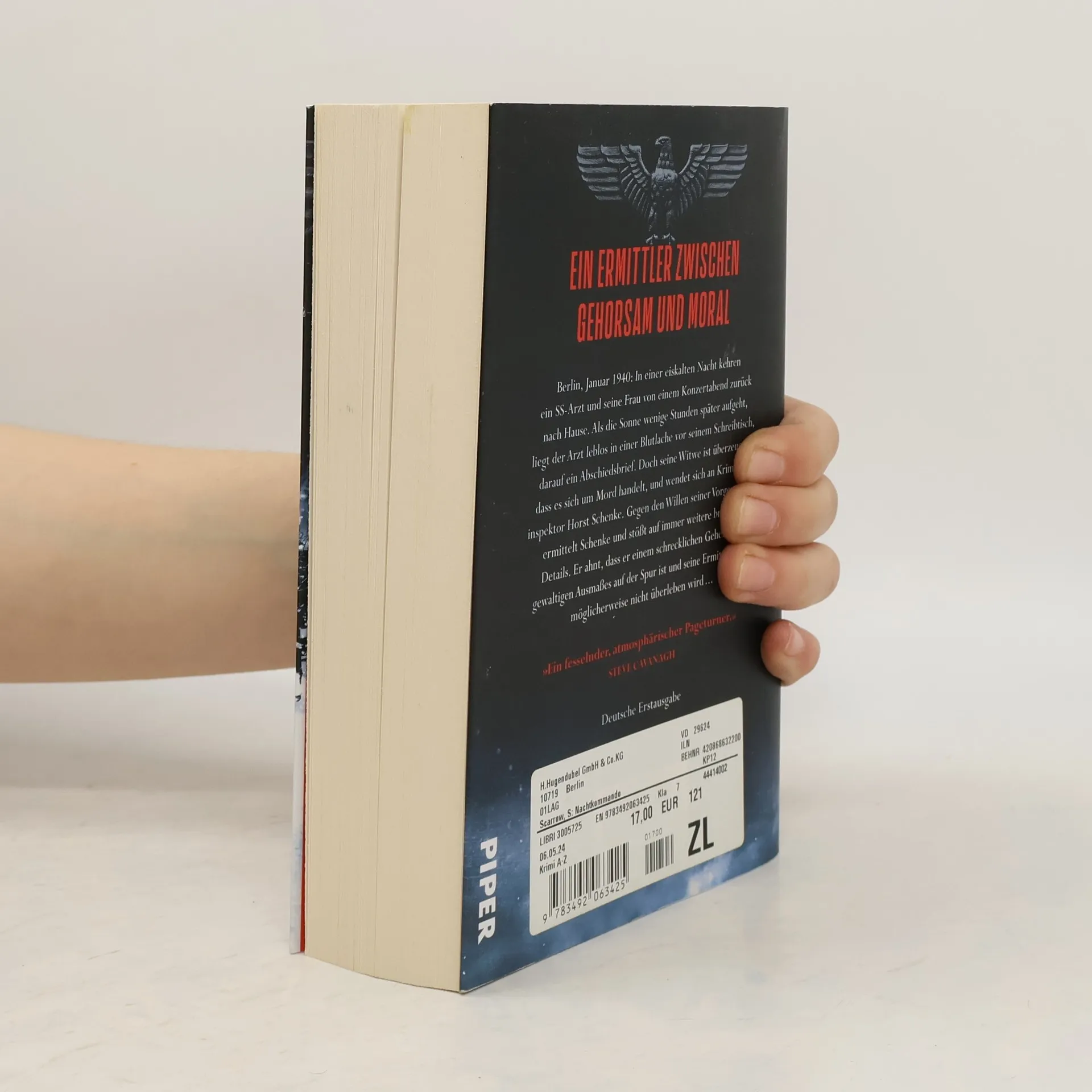 Im ›Dritten Reich ‹ kann jede Entscheidung fatal sein | »Ein fesselnder, atmosphärischer Pageturner.« Steve Cavanagh Berlin, Januar 1940: In einer eiskalten Nacht kehren ein SS-Arzt und seine Frau von einem Konzertabend zurück. Als die Sonne aufgeht, liegt der Arzt leblos in einer Blutlache vor seinem Schreibtisch, darauf ein Abschiedsbrief. Doch seine Witwe ist überzeugt, dass es sich um Mord handelt, und wendet sich an Kriminalinspektor Horst Schenke. Gegen den Willen seiner Vorgesetzten ermittelt Schenke und stößt auf immer weitere brisante Details. Er ahnt, dass er einem schrecklichen Geheimnis größeren Ausmaßes auf der Spur ist und seine Ermittlungen möglicherweise nicht überleben wird ... Der zweite Fall für Kriminalinspektor Horst Schenke von SPIEGEL-Bestsellerautor Simon Scarrow – ein rasanter Thriller im eisigen Berlin der Nazi-Zeit. »Ein Außenseiter in Bedrängnis, eine Welt voller lauernder Gefahren und eine erschreckend glaubwürdige Auflösung.« Owen Matthews »Ein knallharter Pageturner, der ein eisiges Berlin der 1940er Jahre heraufbeschwört, das immer weiter auf moralische Abwege gerät, während die Schrecken des Nazi-Regimes immer schwerer zu ignorieren sind.« S.G. MacLean