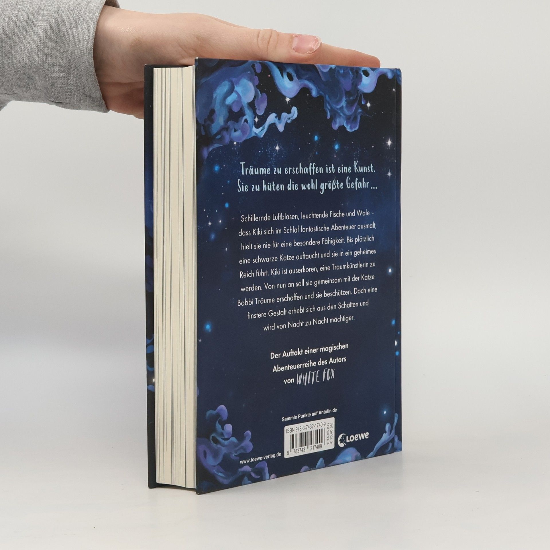 Träume zu erschaffen ist eine Kunst. Sie zu hüten die wohl größte Gefahr … Schillernde Luftblasen, leuchtende Fische und Wale – dass Kiki sich im Schlaf fantastische Abenteuer ausmalt, hielt sie nie für eine besondere Fähigkeit. Bis plötzlich eine schwarze Katze auftaucht und sie in ein geheimes Reich führt. Kiki ist auserkoren, eine Traumkünstlerin zu werden. Von nun an soll sie gemeinsam mit der Katze Bobbi Träume erschaffen und sie beschützen. Doch eine finstere Gestalt erhebt sich aus den Schatten und wird von Nacht zu Nacht mächtiger. Der Auftakt einer magischen Abenteuerreihe Ein fesselndes und geheimnisvolles Fantasy-Abenteuer für Kinder ab 9 Jahren aus der Feder des chinesischen Bestseller-Autors Chen Jiatong. Coolness, Natur, Action, Tiere und die Macht der Träume sorgen für spannenden Lesespaß. Begleite Kiki und ihre schwarze Katze in dieser modernen Parabel rund um Traum und Wirklichkeit, Wünsche und Gefahren. Für alle Fans von White Fox! Mit beeindruckenden Schwarz-Weiß-Illustrationen von Marie Beschorner. Der Titel ist bei Antolin gelistet.