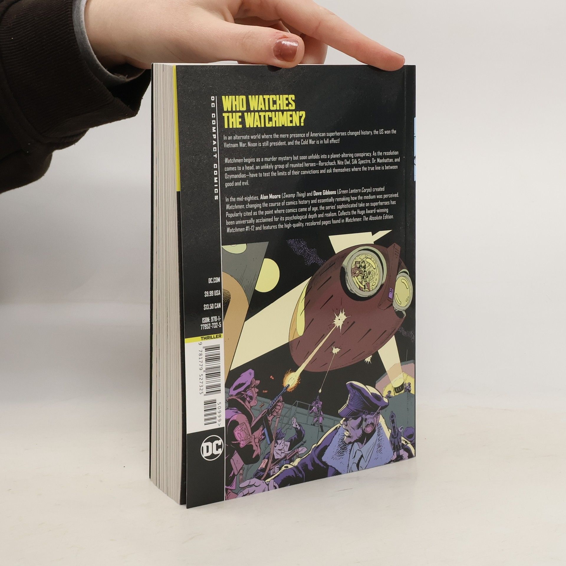 Graphic novels to read anywhere: DC Compact Comics collect DC's bestselling, most iconic stories in a new size! In an alternate world where the mere presence of American superheroes changed history, the US won the Vietnam War, Nixon is still president, and the cold war is in full effect! Considered the greatest graphic novel in the history of the medium, WATCHMEN begins as a murder mystery but soon unfolds into a planet-altering conspiracy. A group of reunited heroes--Rorschach, Nite Owl, Silk Spectre, Dr. Manhattan and Ozymandias--must test the limits of their convictions and ask themselves where the true line is between good and evil. Collects Watchmen #1-12, the complete story.