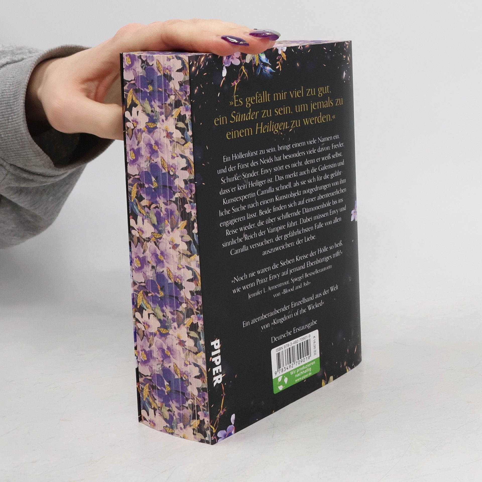 Der Fürst des Neids hat viele Namen: Frevler, Schurke, Sünder. Er stört sich nicht daran, denn er weiß selbst, dass er kein Heiliger ist. Als er eine kryptische Nachricht erhält, die den Beginn eines tödlichen Spiels ankündigt, weiß er, dass er noch viel schlimmere Namen zugeschrieben bekommen wird, bevor es endet. Das Problem mit Schurken und Halunken ist, dass sie kein Fünkchen Ehre im Leib haben – eine Tatsache, die Miss Camilla Antonius auf die schmerzhafte Art erfährt, denn sie wird von einem mächtigen Lord erpresst. Da trifft sie auf den mysteriösen Lord Ashford Synton, genannt »Syn«, der ihr einen Deal anbietet – denn nur sie, mit ihrem einzigartigen künstlerischen Talent, kann ihm helfen, ein illustres Kunstobjekt zu finden. Um ihrer Vergangenheit zu entgehen, willigt Camilla ein. Gemeinsam müssen Envy und Camilla sich auf eine gefährliche Reise begeben, die von schillernden Dämonenhöfen bis hin zum sinnlichen Reich der Vampire führt, und dabei versuchen, der gefährlichsten Falle von allen auszuweichen: der Liebe. Ein prickelndes Spin Off aus der Welt von »Kingdom of the Wicked«. Der Einzelband rund um den Fürsten Envy kann unabhängig von den anderen Bänden gelesen werden.