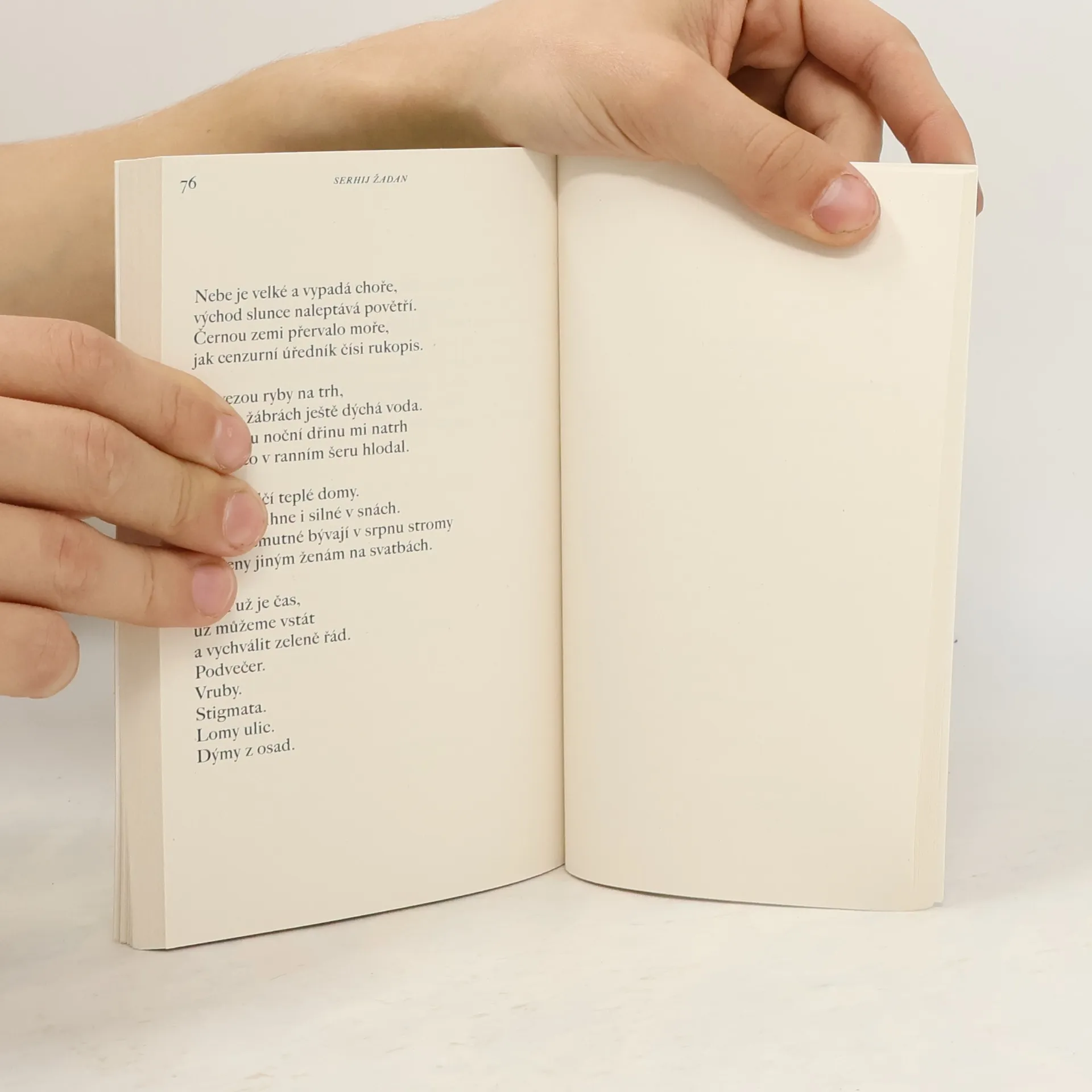 V Kyjevě jsem uslyšela hlas, který ke mně promlouval současností a napřímo: schylovalo se k invazi ruských vojsk na Ukrajinu. Žadan četl v jednom z klubů své básně, naprosto civilně, bez patosu. S každou z nich přede mnou vznikal obraz východní Ukrajiny, zaznívalo v nich to, co jsem na východě já sama prožívala, co mě překvapilo a zarazilo, čemu jsem často nerozuměla, a o to víc mě to přitahovalo. Žadan je básník reflexe, s minimem vlastních emocí. V jeho díle se nikdo nedočte, jestli má ženu nebo dítě, zda bydlí v domě nebo suterénním bytě - o něm samotném se nedozvíme zhola nic. Ovšem ten východní prostor v jeho verších! Tak vzdušný, mocný a krásný - nehledě na to, že v něm zuří válka, že už nikdy nebude takový, jako byl před ní.