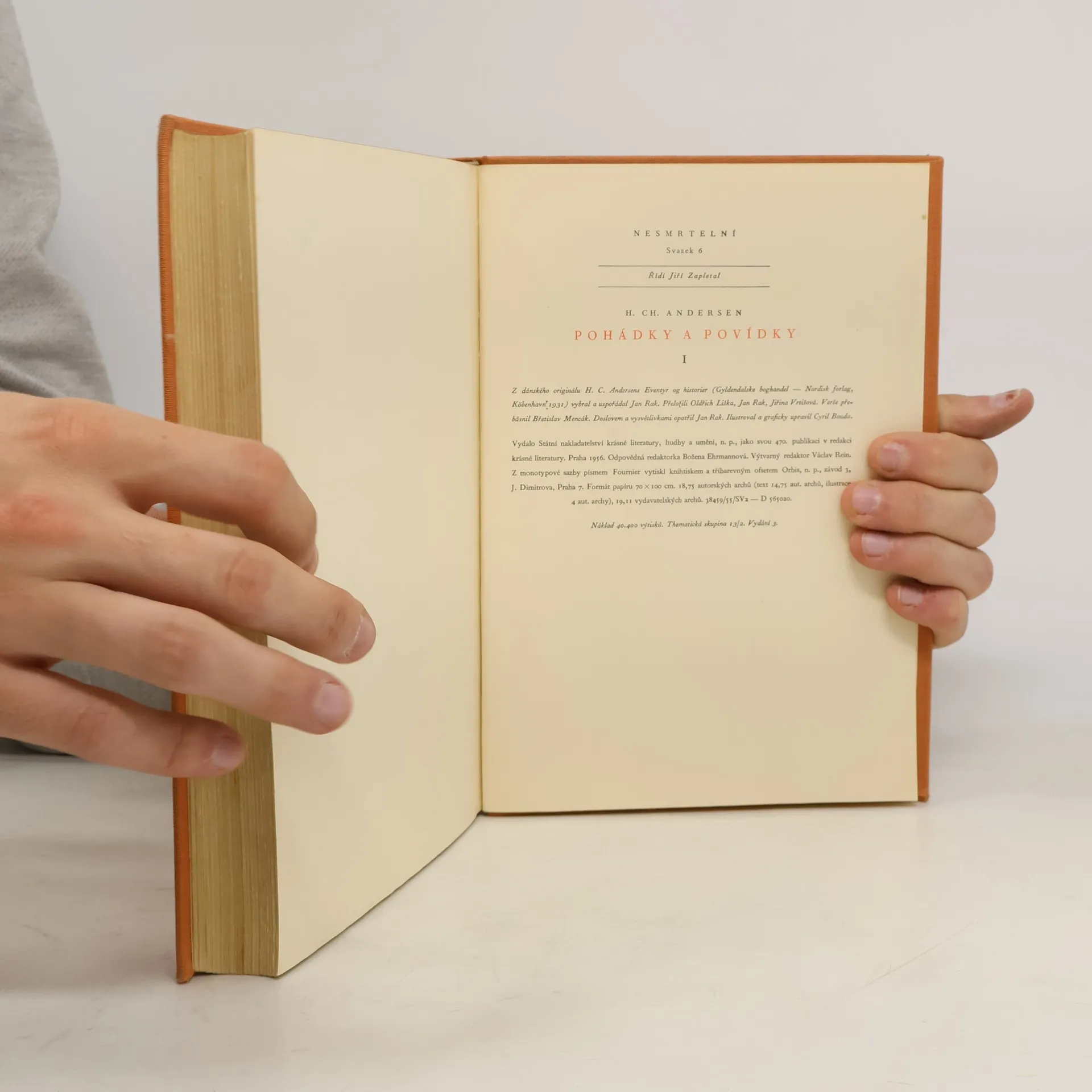 35 pohádek od jednoho z nejlepších světových pohádkářů. Ilustrace Cyril Bouda. Pohádky: Křesadlo, Mikula a Mikulka, Princezna na hrášku, Iduščiny květiny, Nezbedný kluk, Přítel na cestách, Malá mořská víla, Císařovy nové šaty, Přezuvky Štěstěny, Sedmikráska, Statečný cínový vojáček, Divoké labutě, Létající kufr, Bronzový kanec, Rúže s Homérova hrobu, Ole Zavřiočka, Pasáček vepřú, Slavík, Ošklivé kačátko, Smrček, Sněhová královna, Látací jehla, Babička, Závody ve skoku, Pastýřka a kominíček, Holger Dán, Devčátko se sirkami, Obrázek ze zámeckých hradeb, Z vartovského okna, Stará svítilna, Sousedé, Stín, Starý dúm, Šťastná rodina, Je to naprosto jisté.